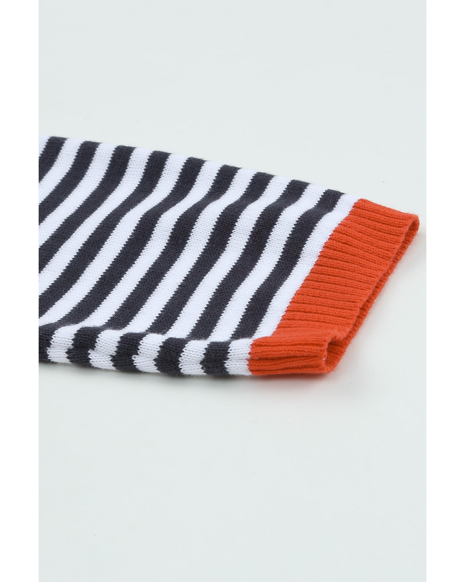 Contrast Trimmed Striped Drop Shoulder Sweater – S