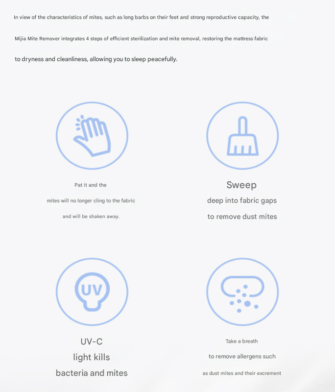 • 4-STEP DEEP CLEANING: This device integrates a powerful 4-stage process: high-frequency vibration to dislodge deep-seated mites, a high-speed brush to sweep them away, powerful suction to capture them, and a UV-C light to effectively sterilize the surface.