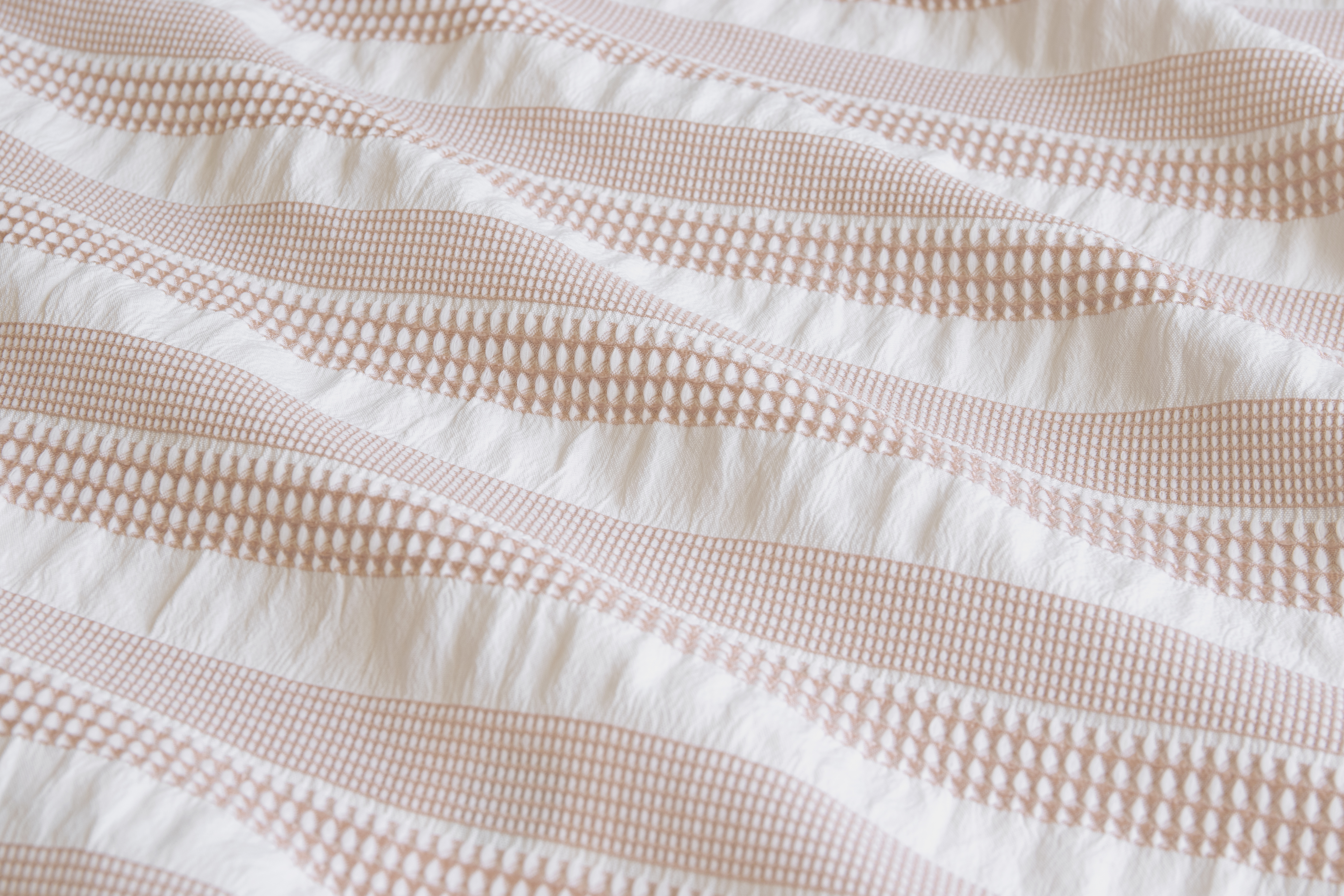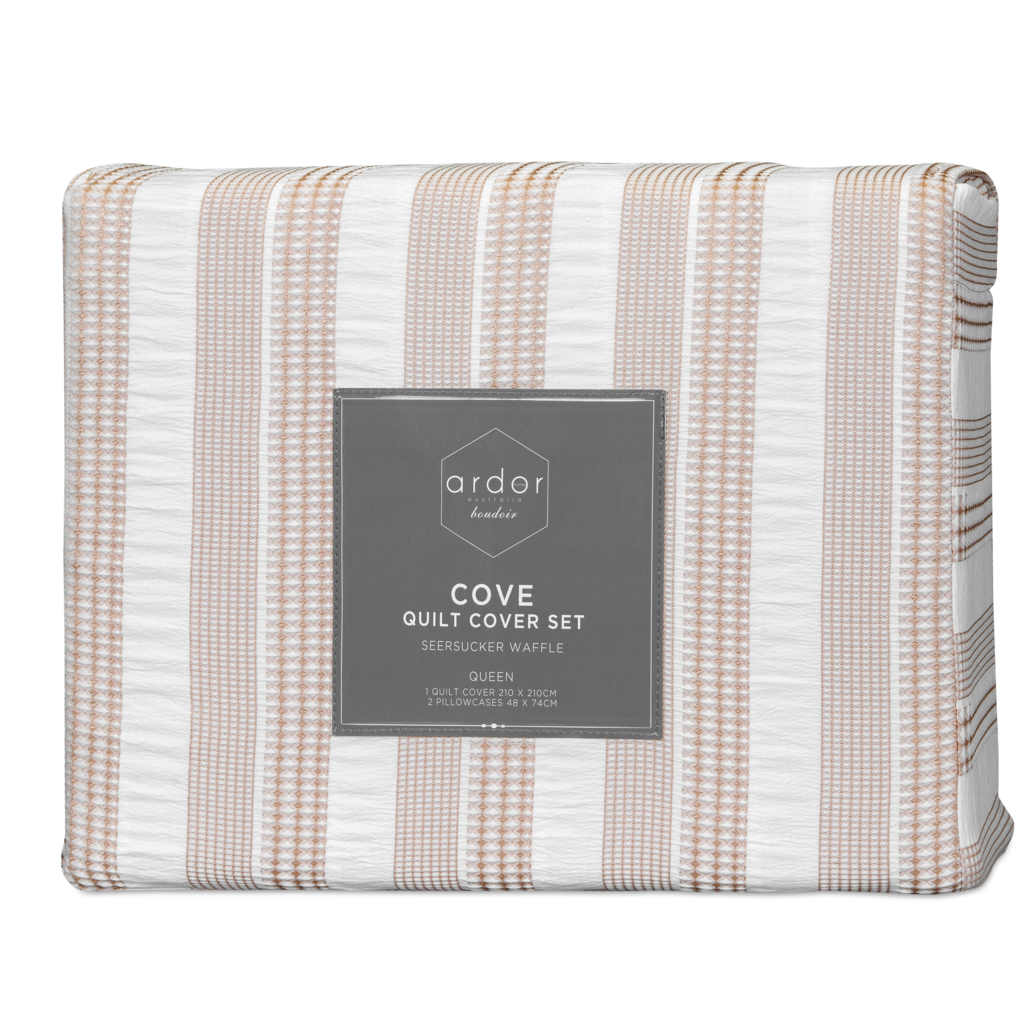 The Cove Quilt Cover Set features a textured spin on classic vertical stripes with its microfibre seersucker waffle weave. Available in Coastal grey and Chambray, balance an intriguing design with modest hues.
