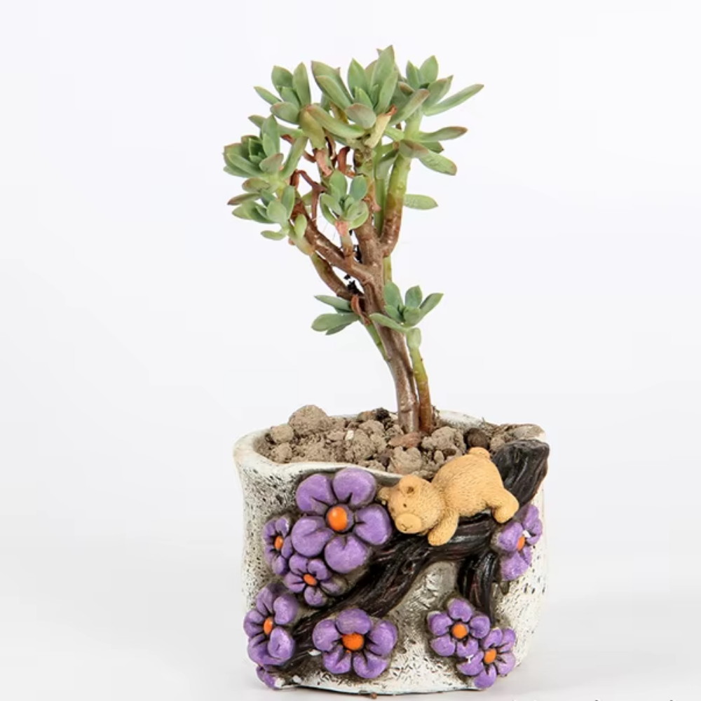 This bear themed succulent pot, could also be used as a bonsai pot, is made of cement and is hand caste and hand painted, with a drainage hole. All designs are very cute and will make you smile. Range from 8-10cm wide. Random design sent. Collect all 7. Pot only.