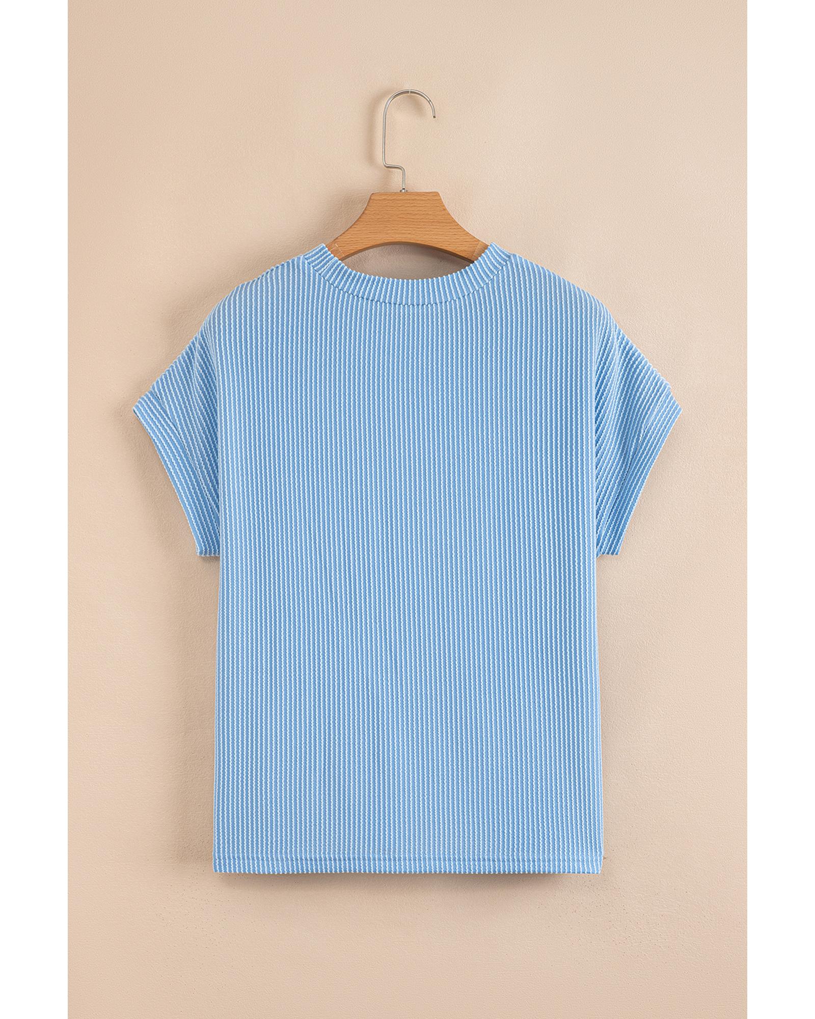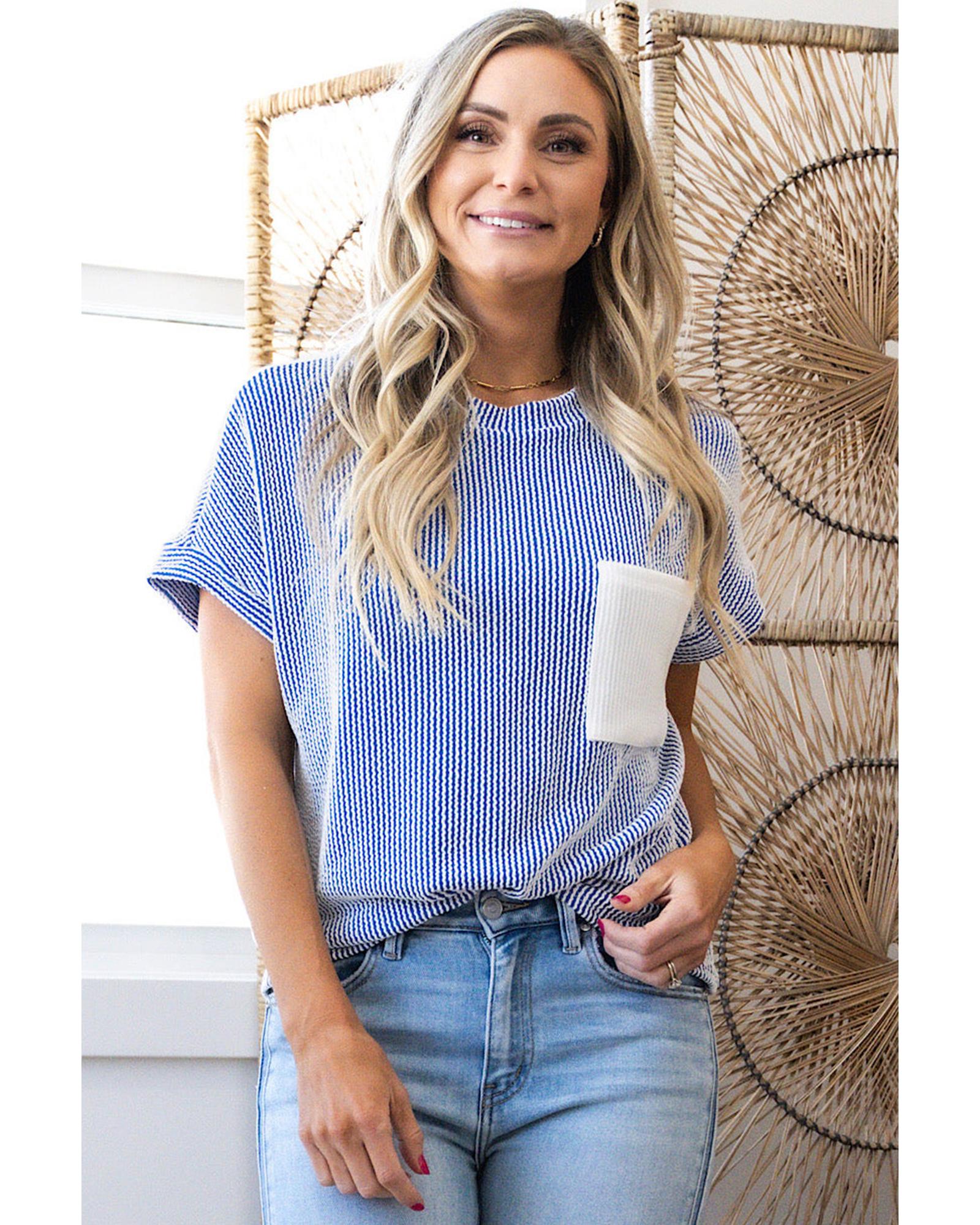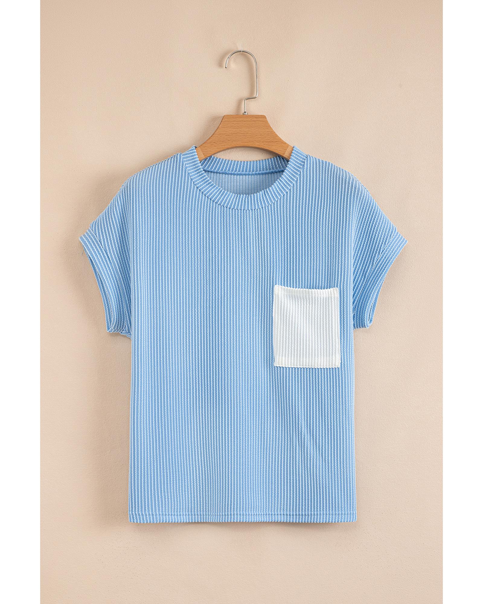 Dark Blue Corded Knit Color Block Pocketed Crew Neck T Shirt – S