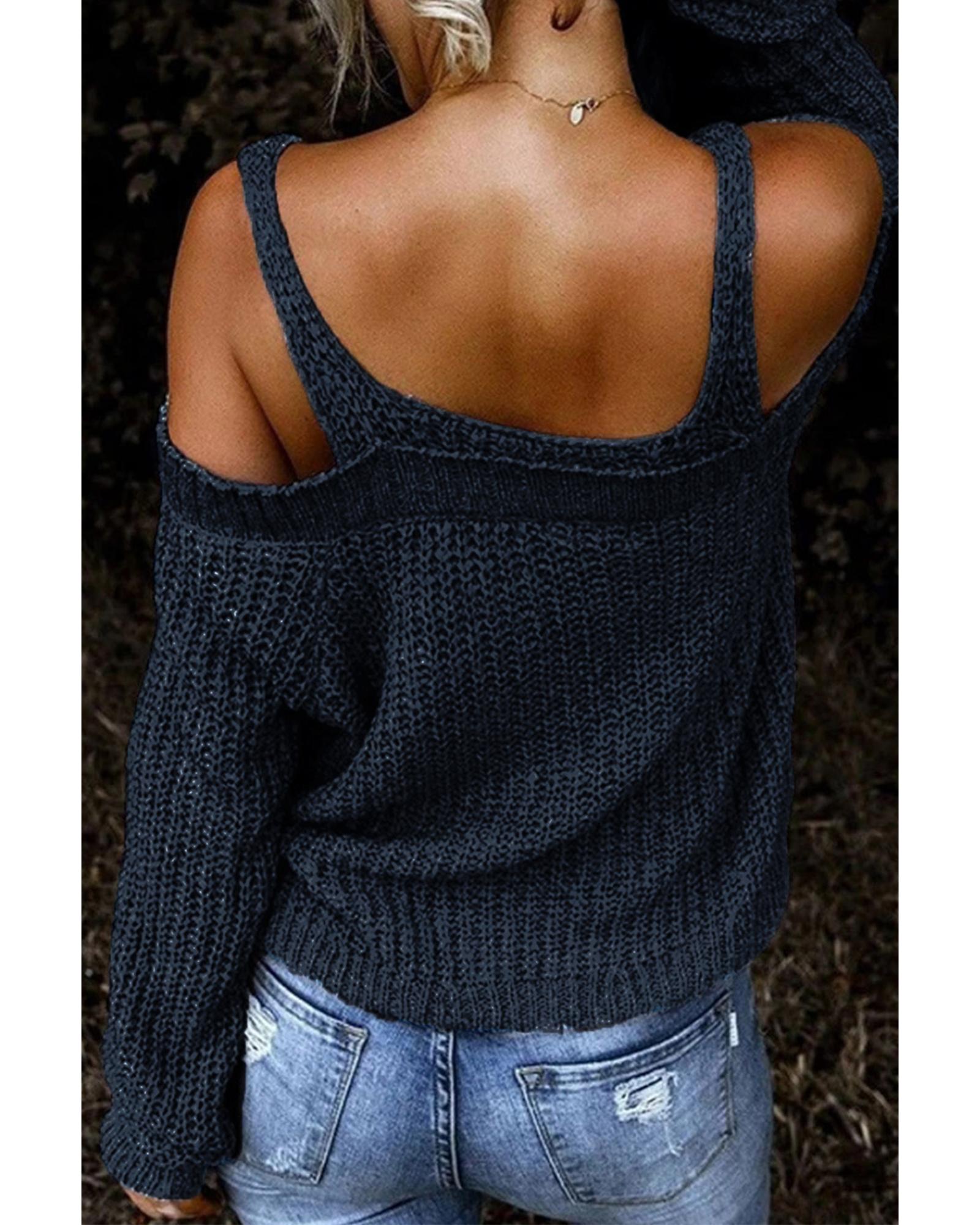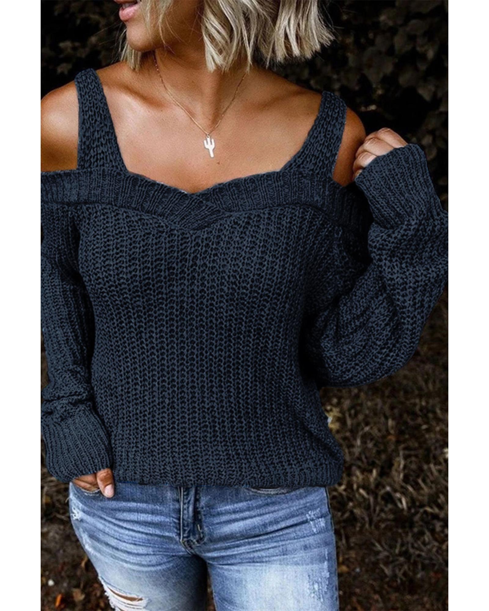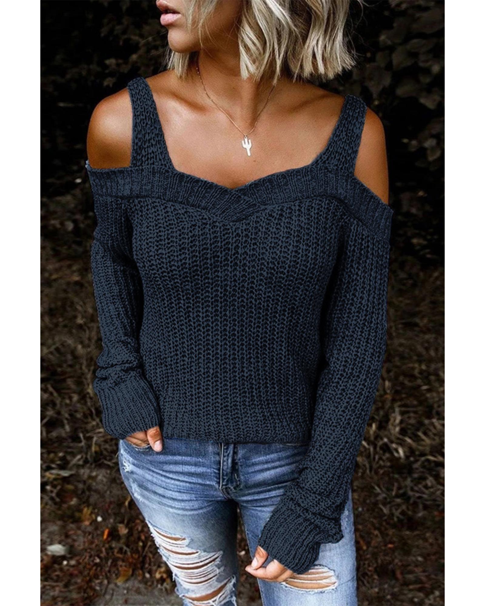 Dark Blue Dew Shoulder Juliette Knitted Sweater – M