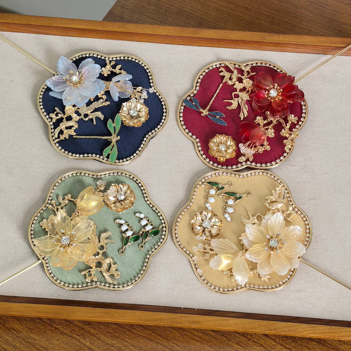 Capture the grace and beauty of ancient traditions with this exquisite mini palace-style fan. Meticulously designed as a decorative prop, it is the perfect accessory to elevate your photoshoots, complement your costume, or serve as a stunning display piece. Its small, palm-sized design makes it a delicate and charming addition to any artistic project.