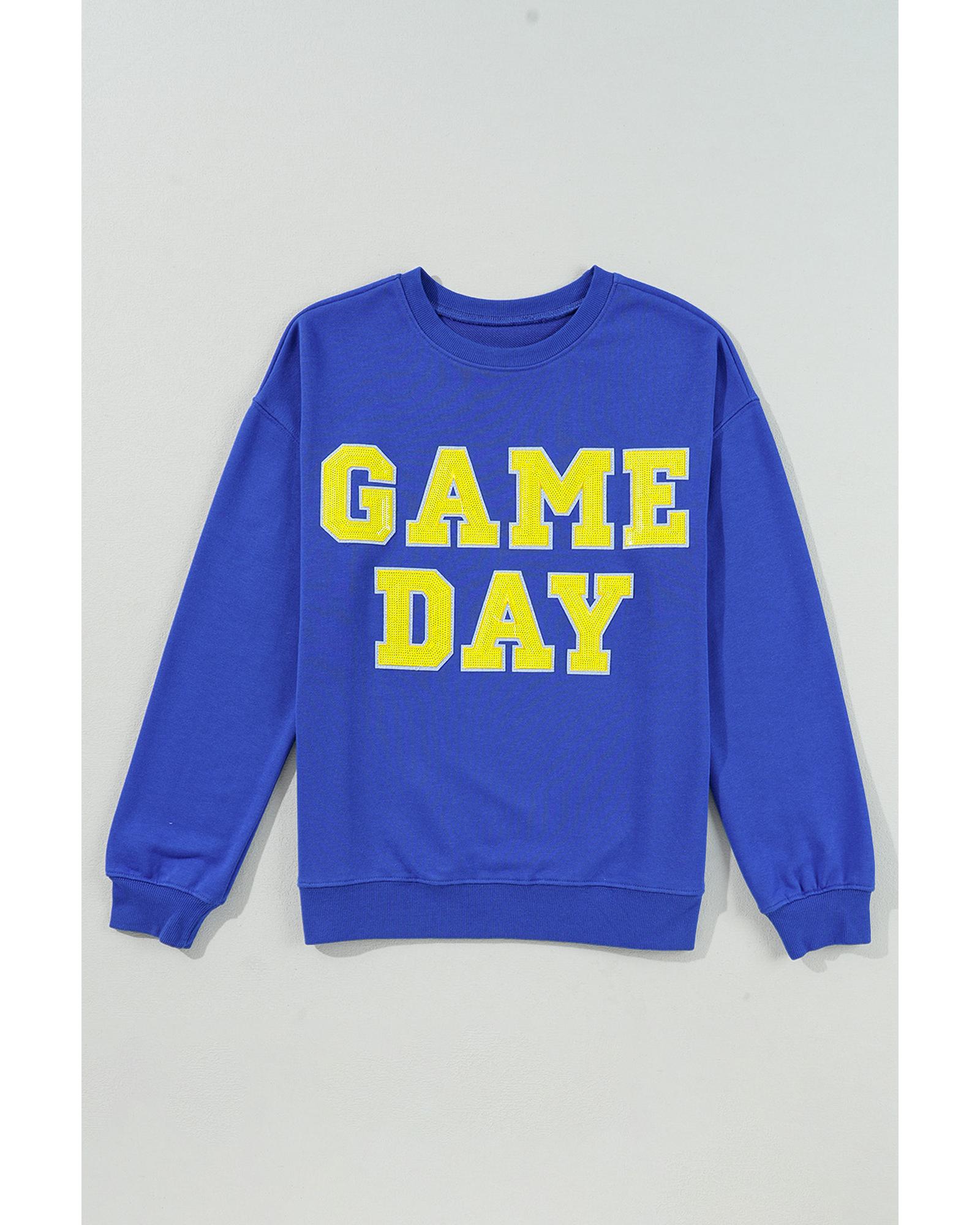 Dark Blue Game Day Crew Neck Graphic Pullover Sweatshirt – L