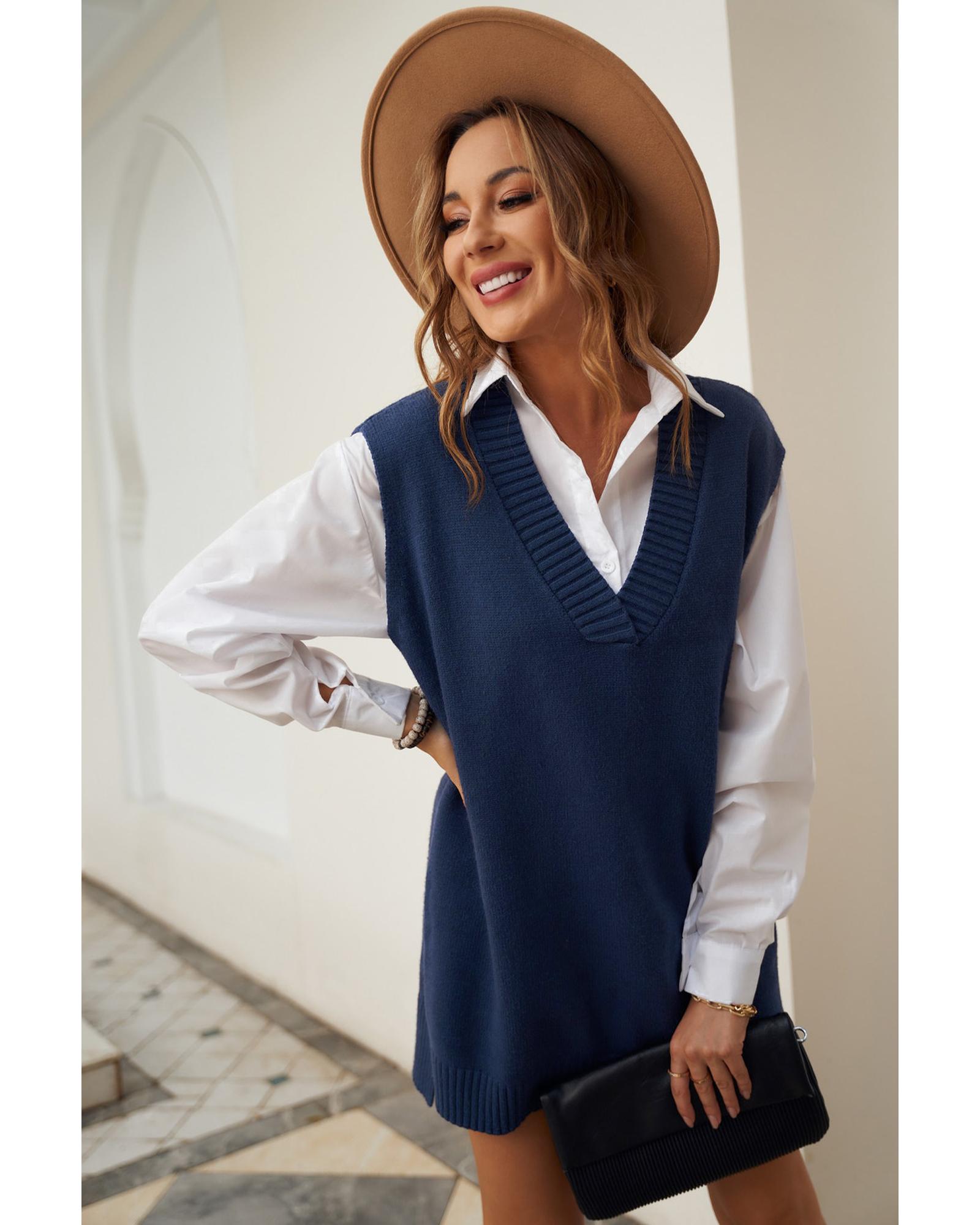 • Stylish and comfortable Dark Blue Knit Vest Pullover Sweater