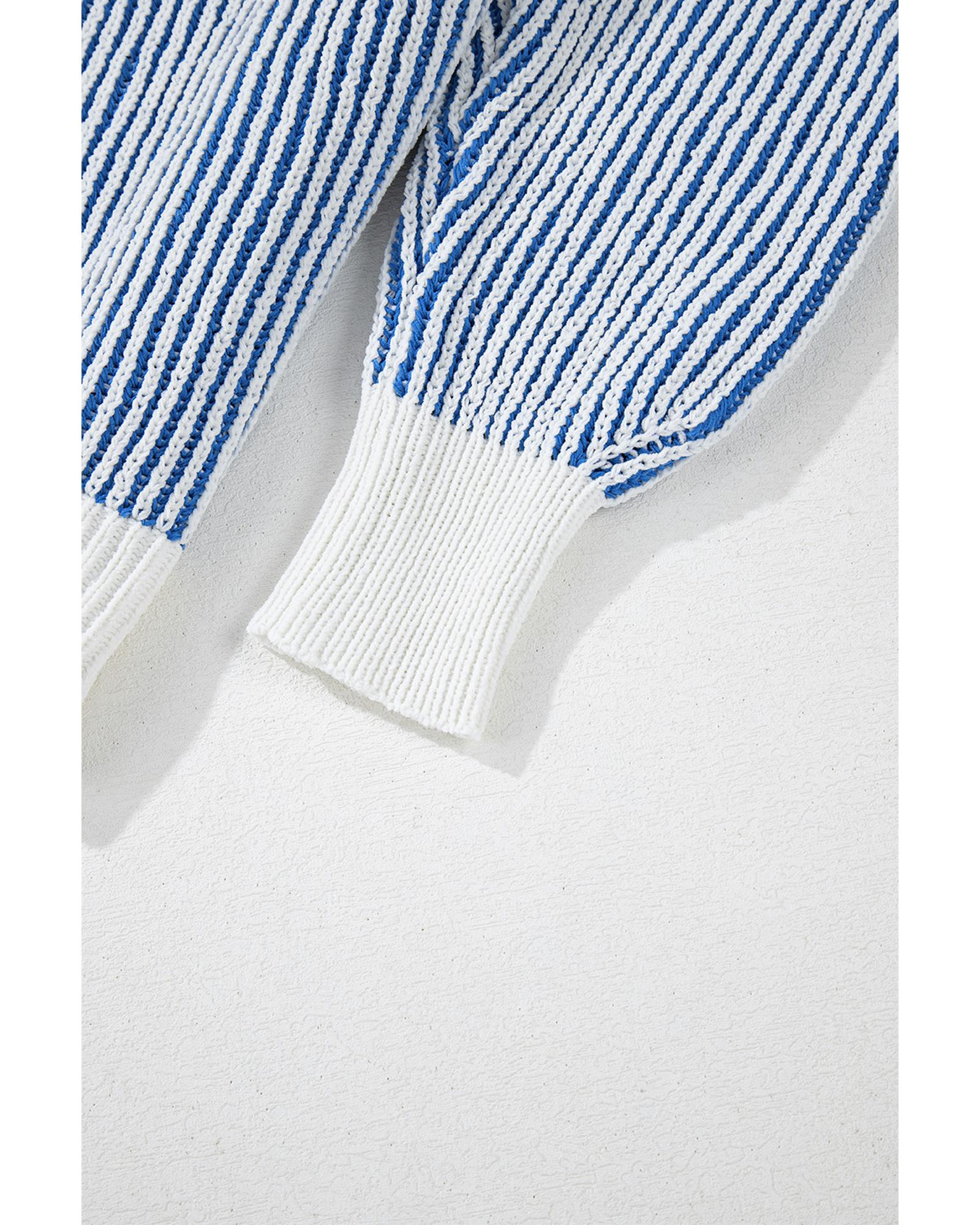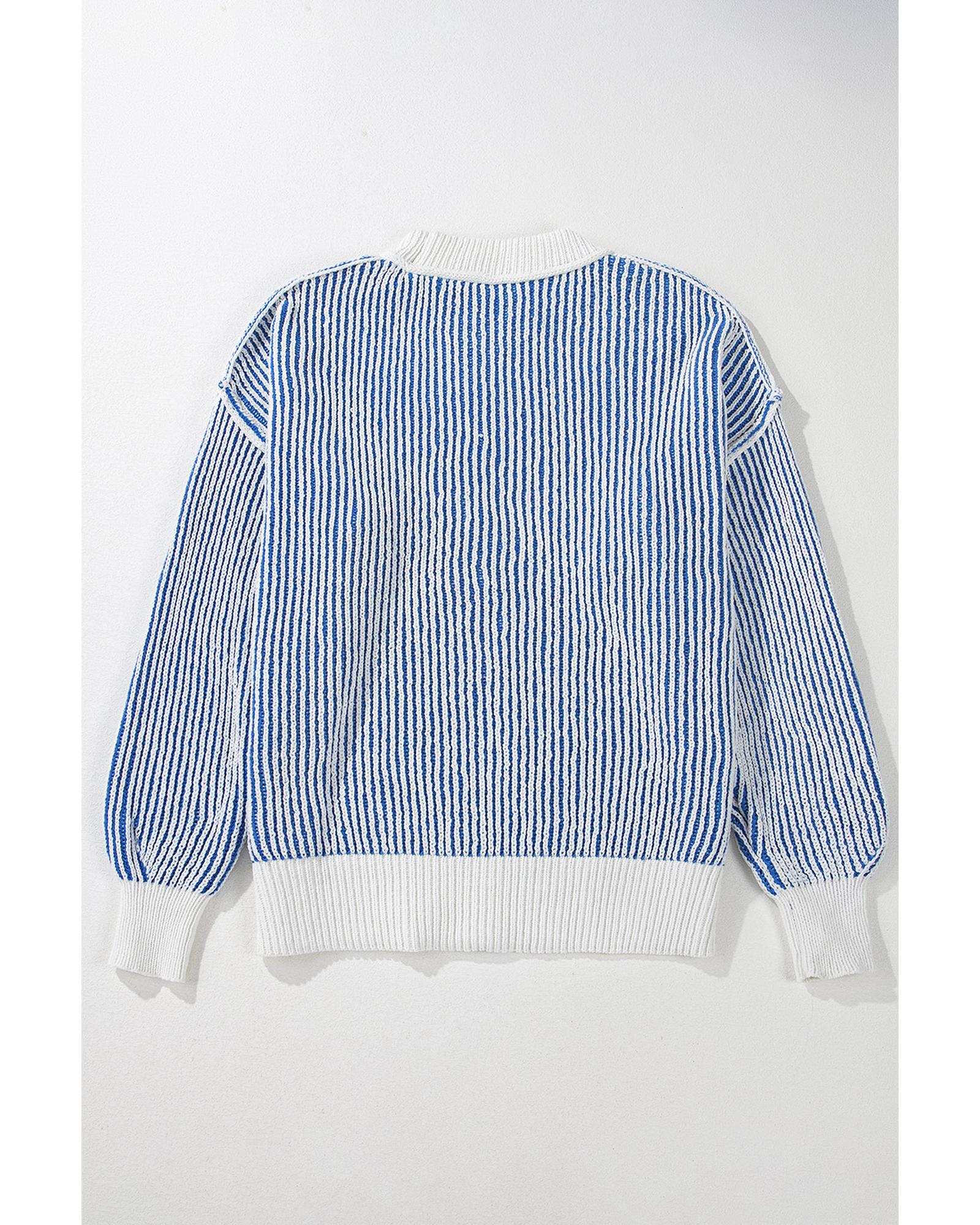 - Dark Blue Striped Textured Knit Contrast Edge Loose Sweater