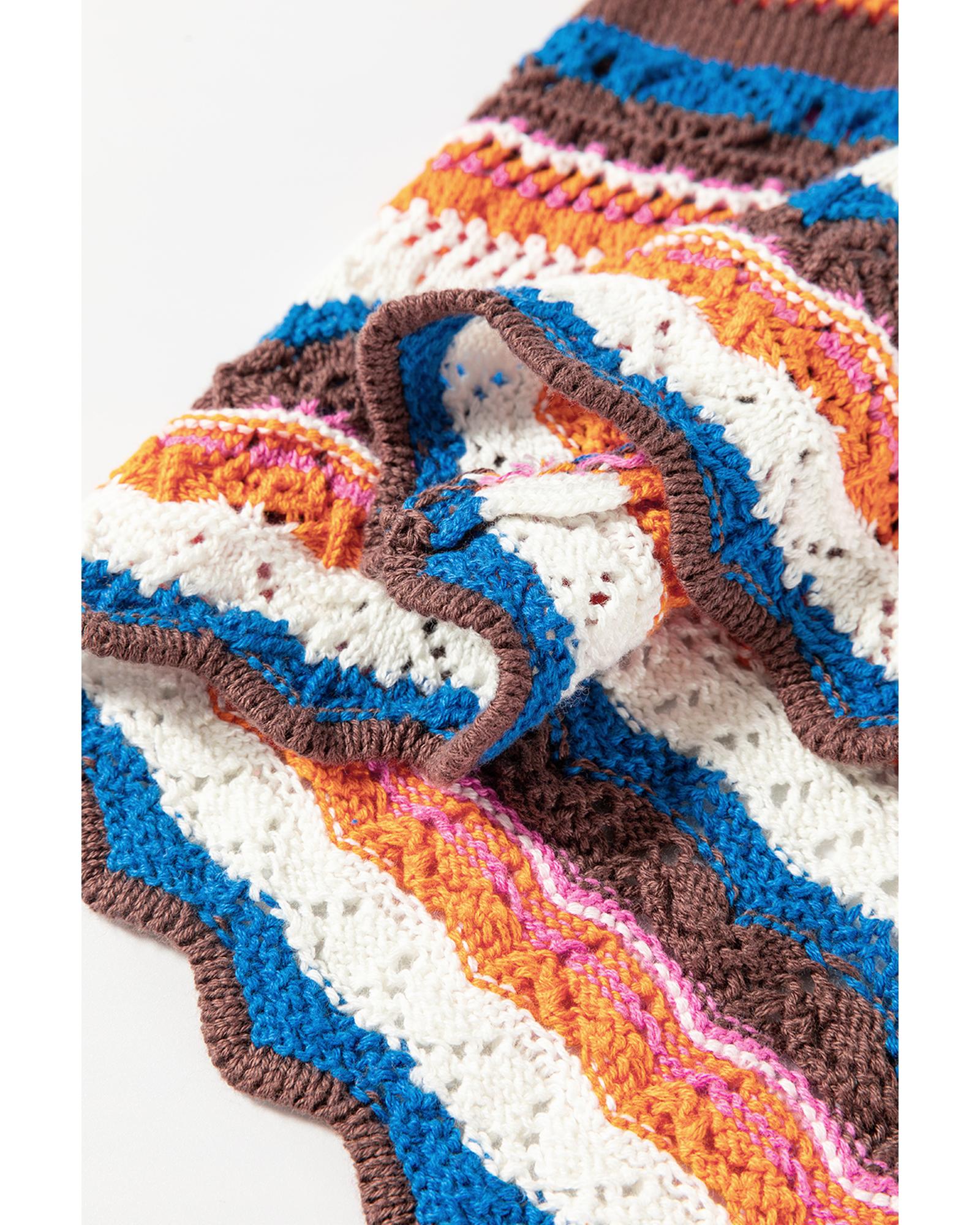 Dark Blue Striped Textured Knit Crew Neck Sweater Vest – L