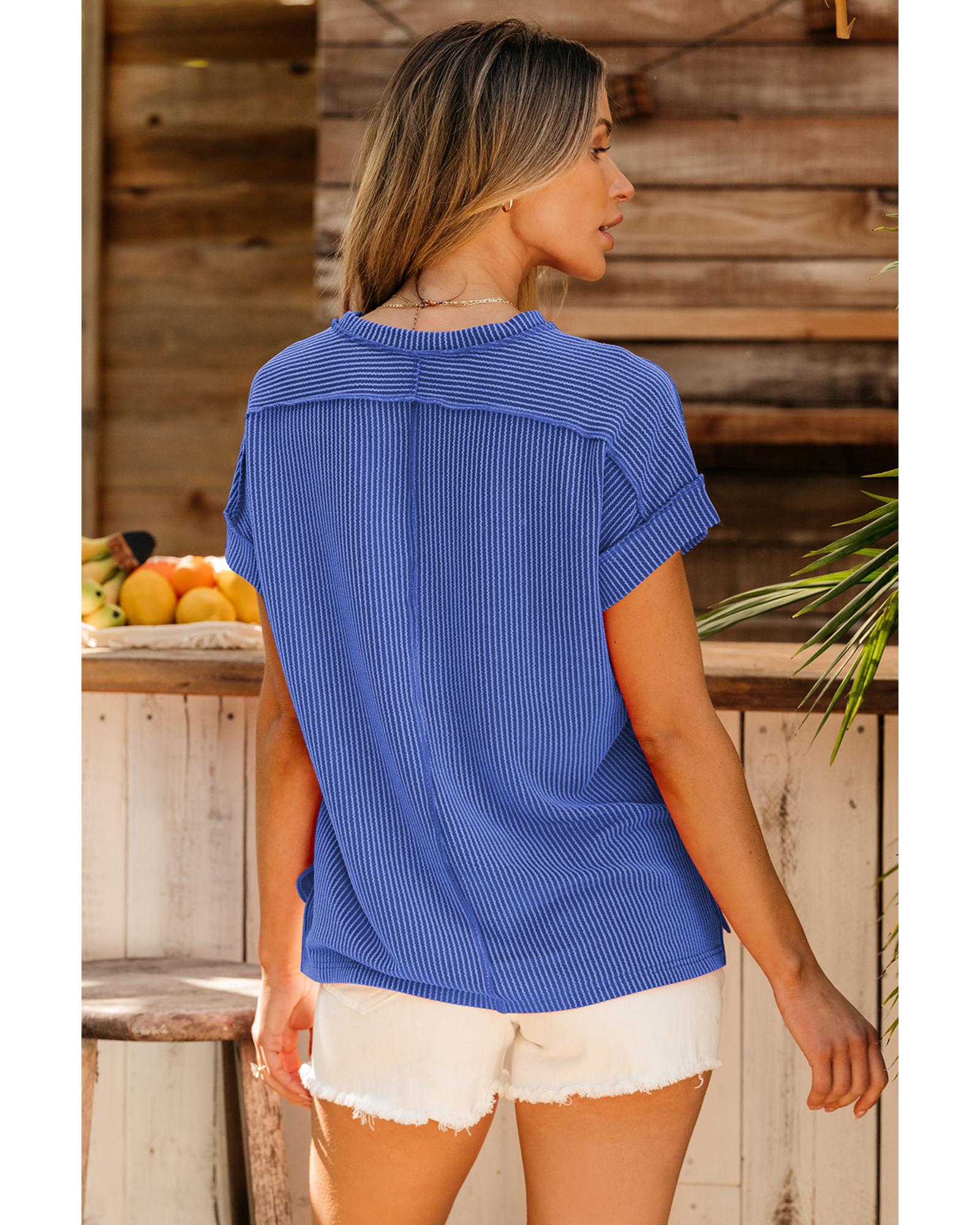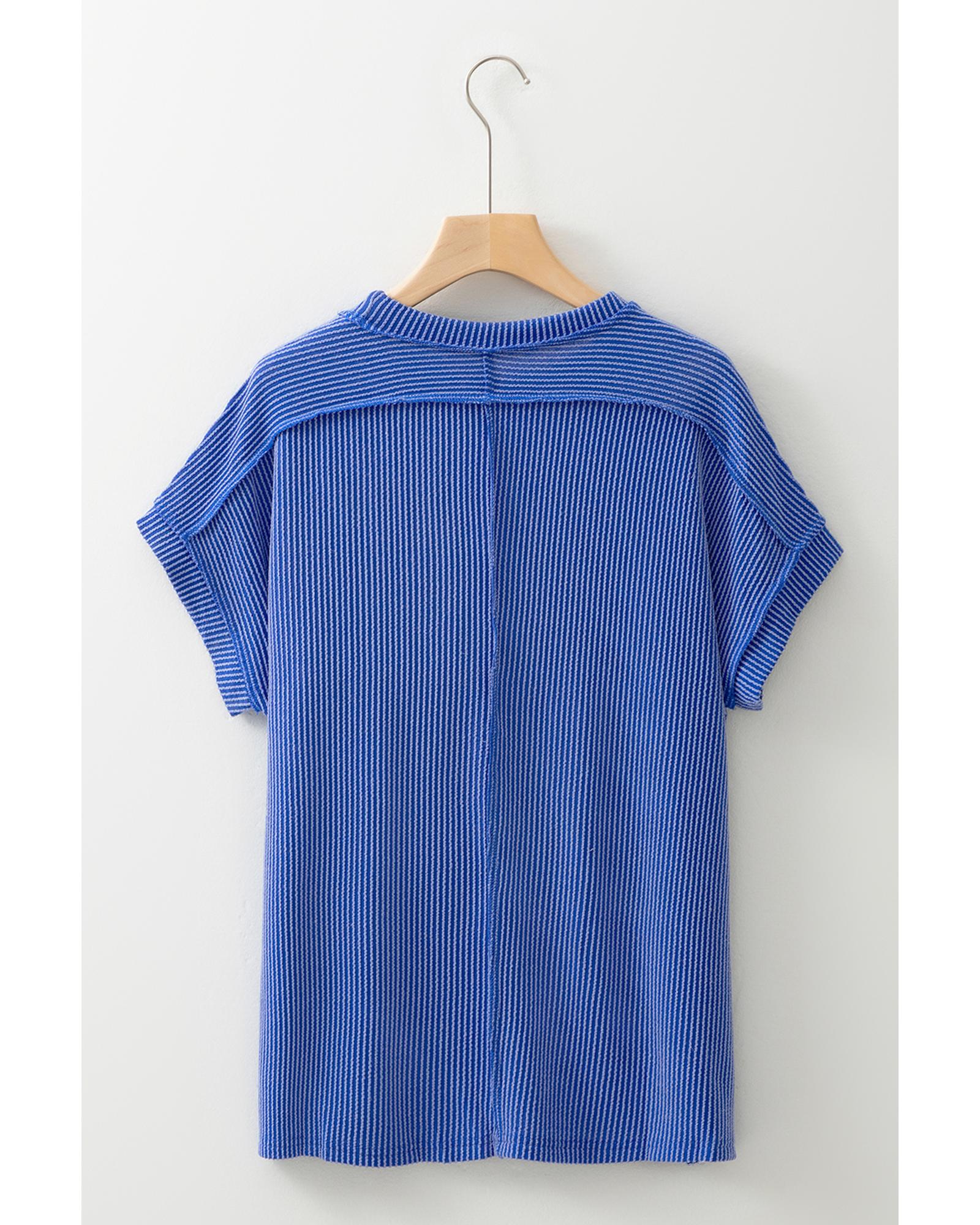 Dark Blue Textured Knit Exposed Stitching T-shirt – S