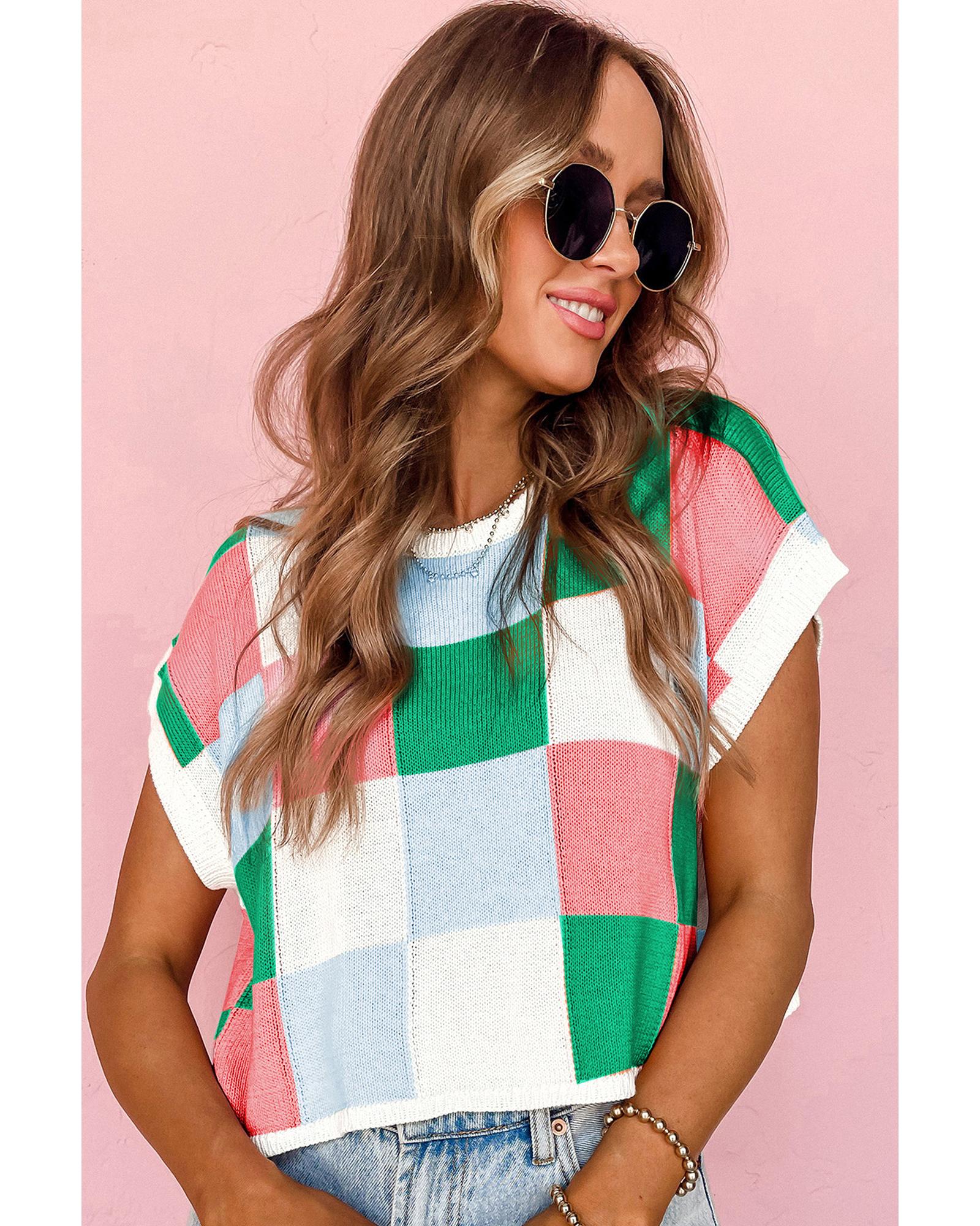 Dark Green Color Block Cap Sleeve Sweater – L