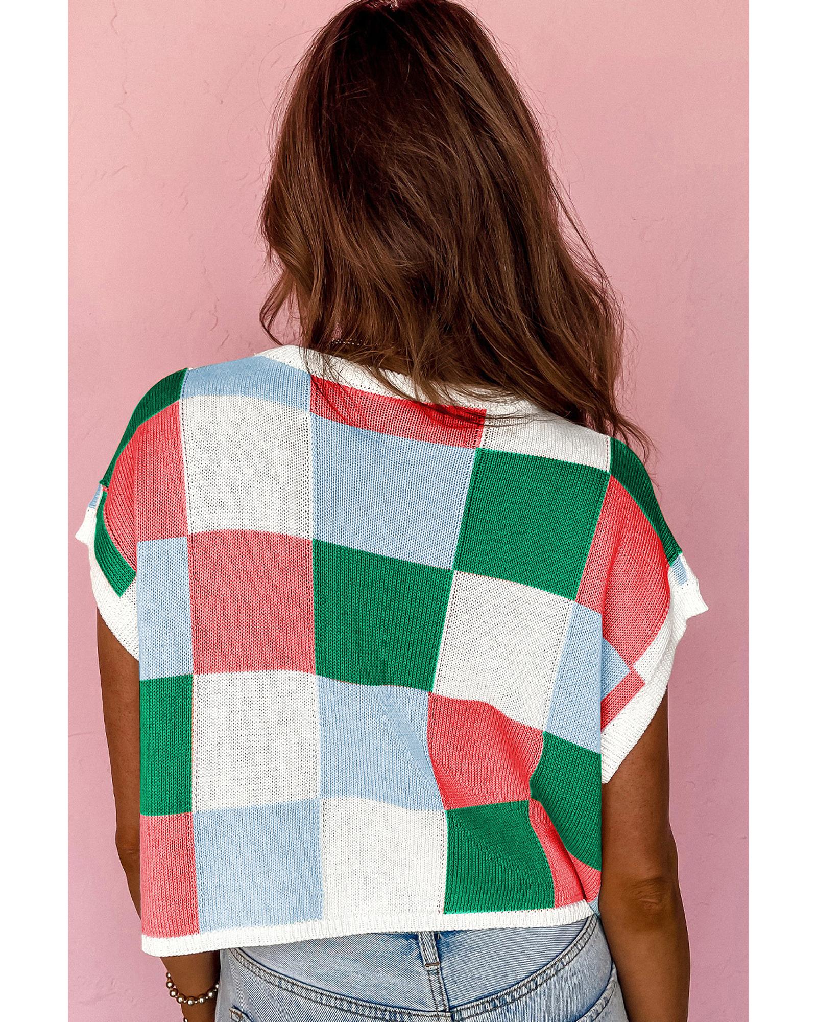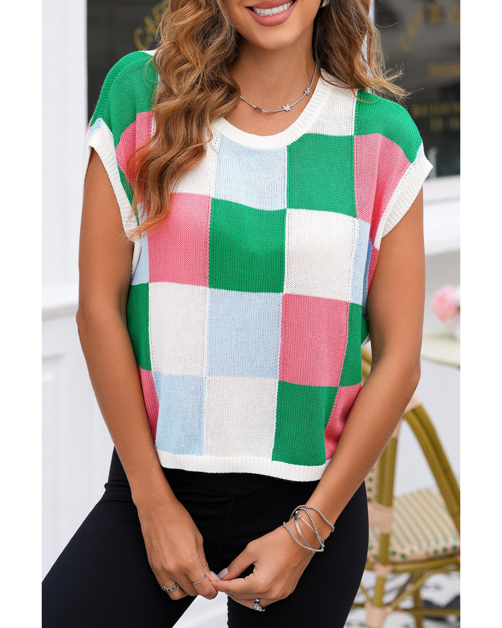 Dark Green Color Block Cap Sleeve Sweater – XL