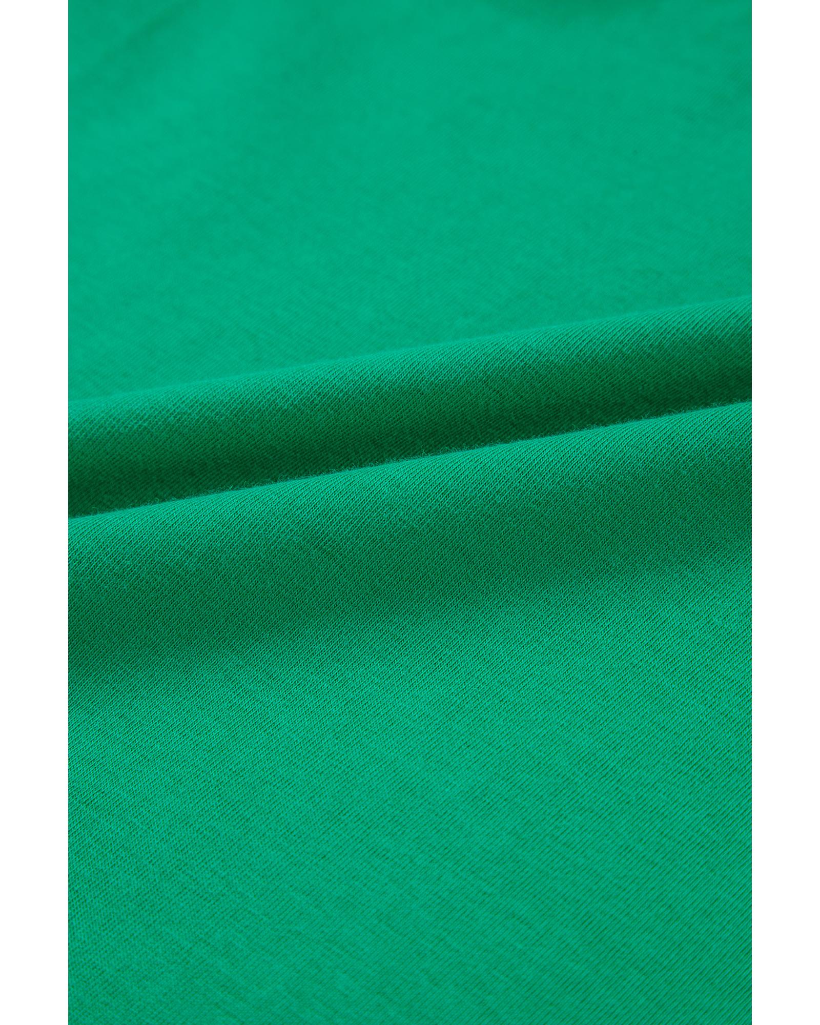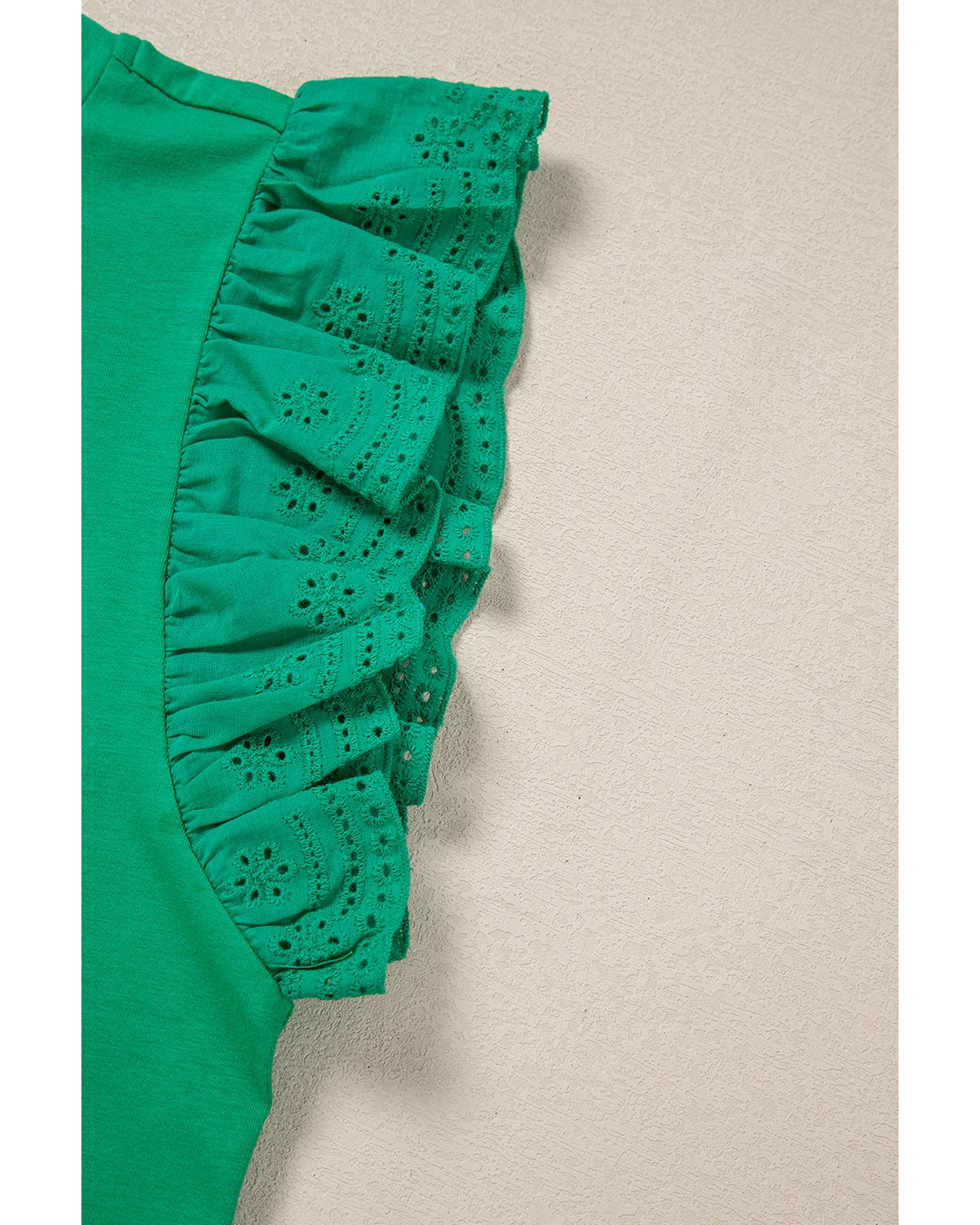 Dark Green Embroidered Ruffled Sleeve Slim Fit Crew Neck Top – L