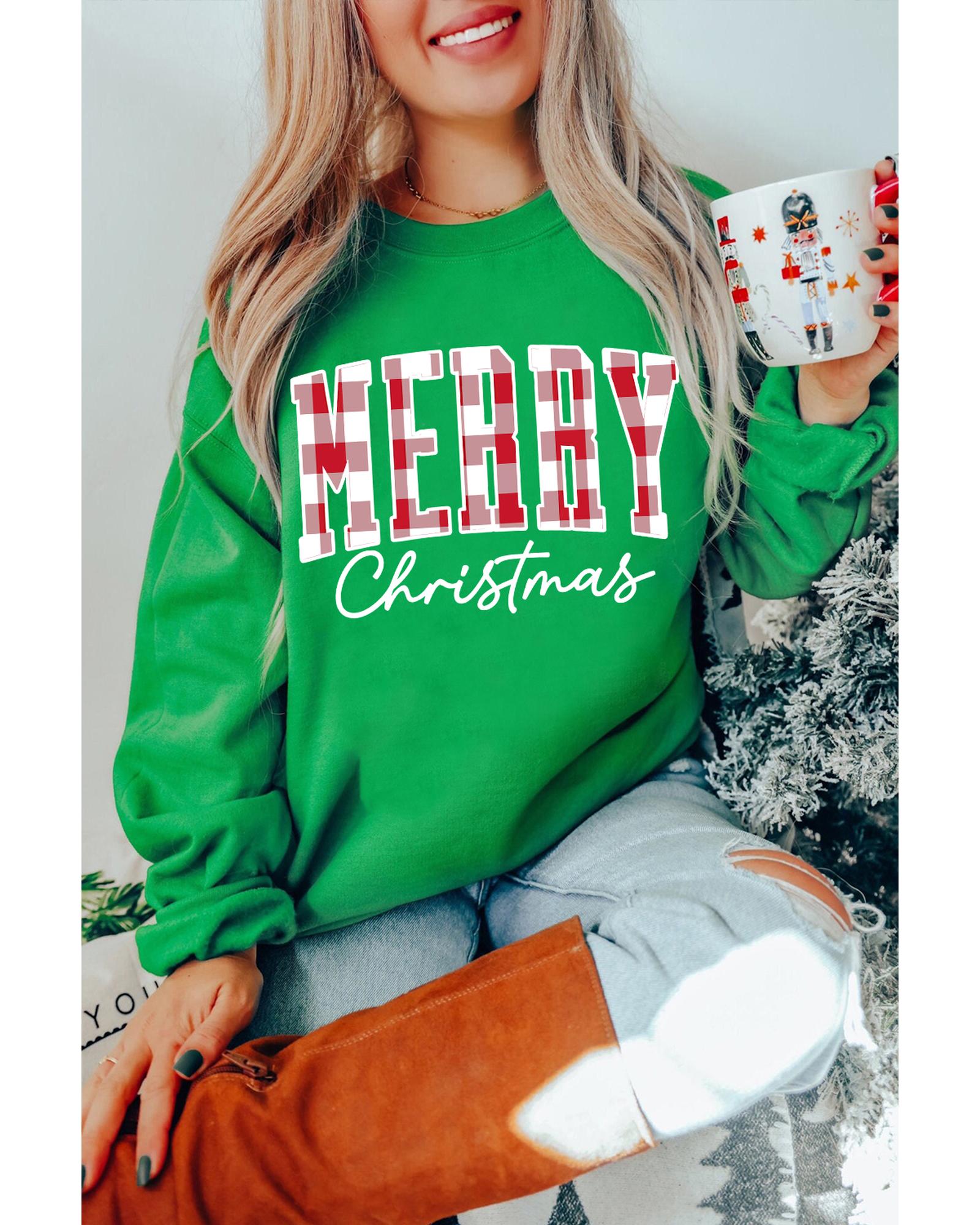 - Dark Green Merry Christmas Heat Transfer Graphic Sweatshirt