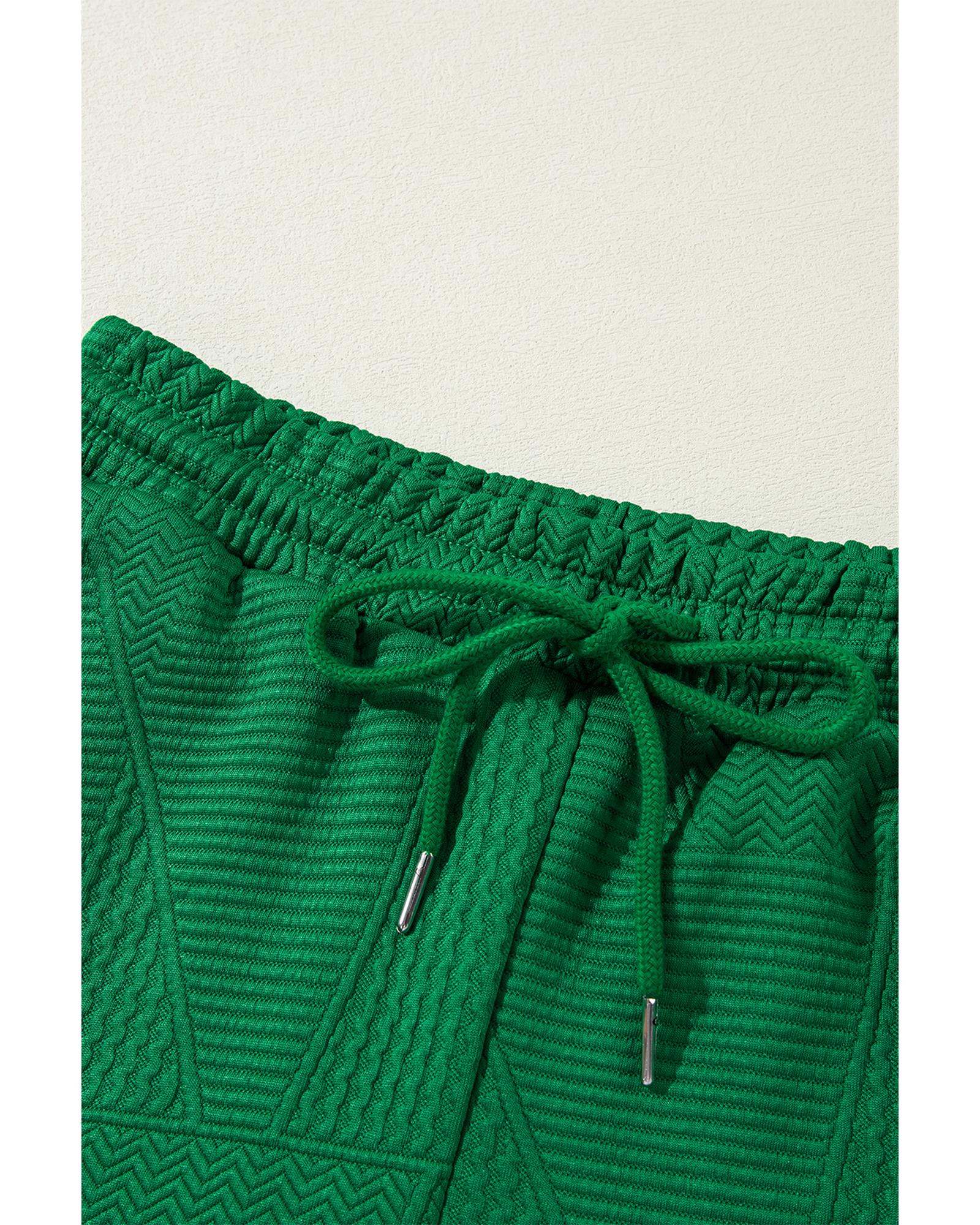 Dark Green Ruffled Sleeve Summer Top and Cropped Loose Pants Set – L