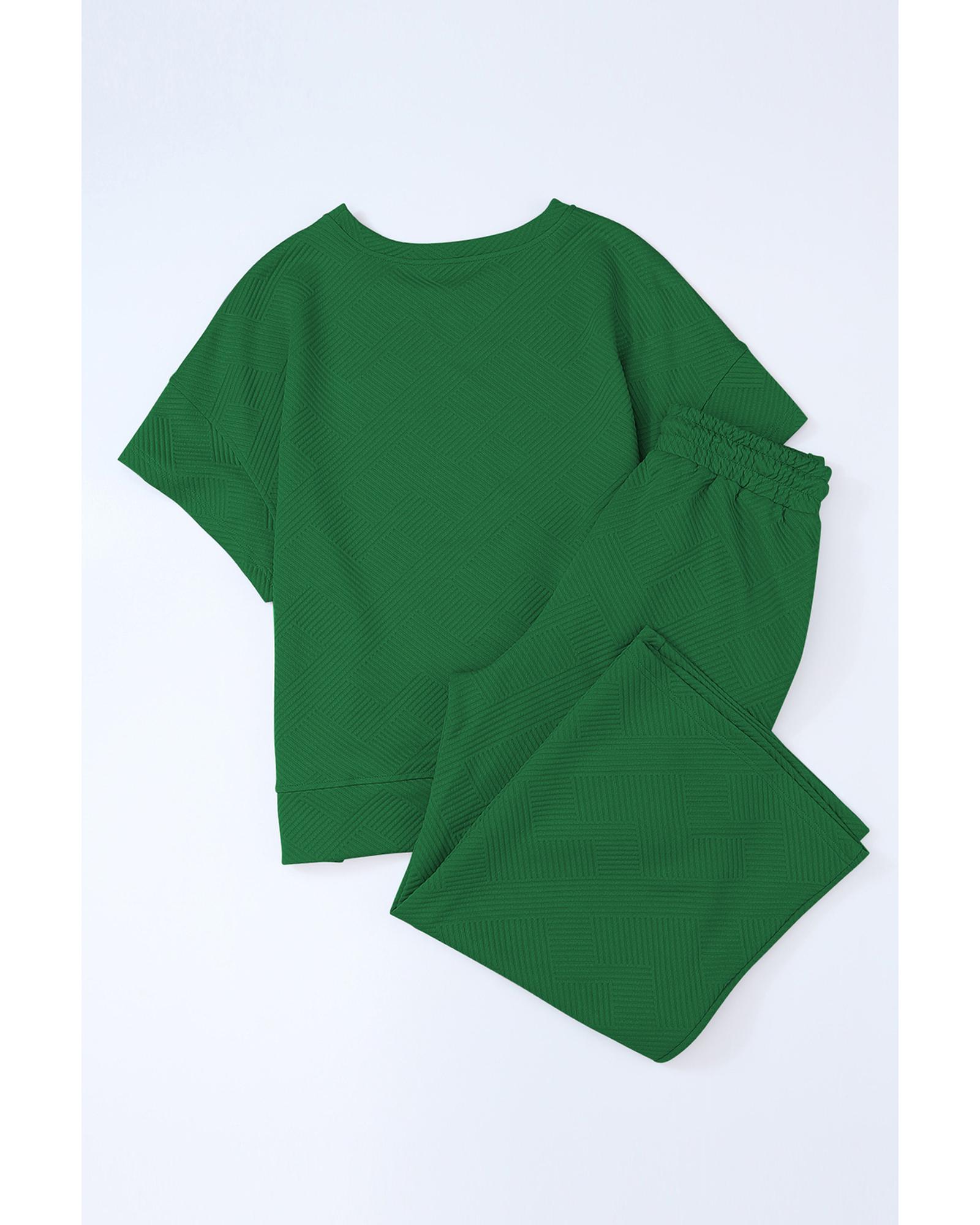 Dark Green Textured Loose Fit T Shirt and Drawstring Pants Set – M