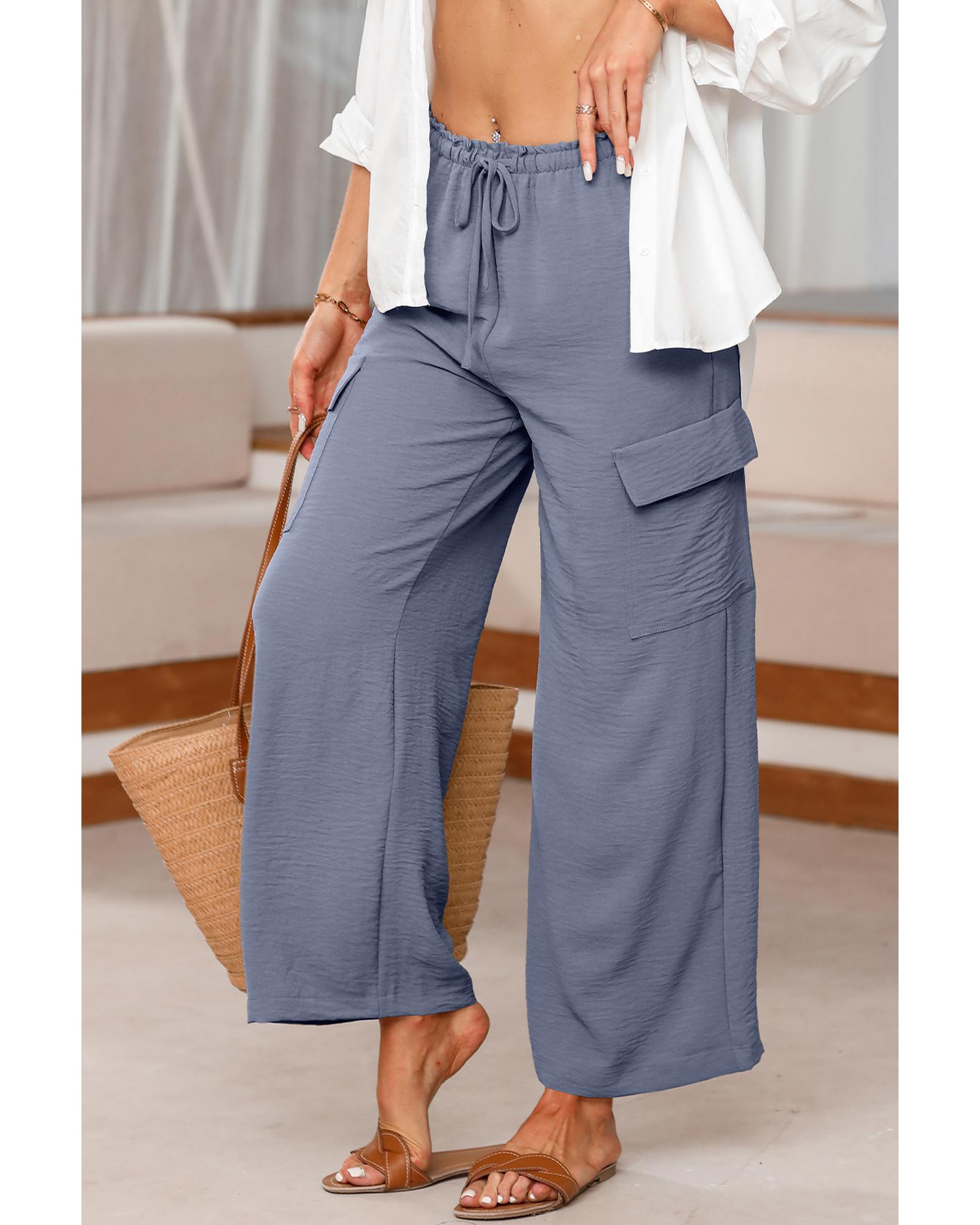Dark Grey Drawstring Frilled Waist Wide Leg Utility Trousers – S