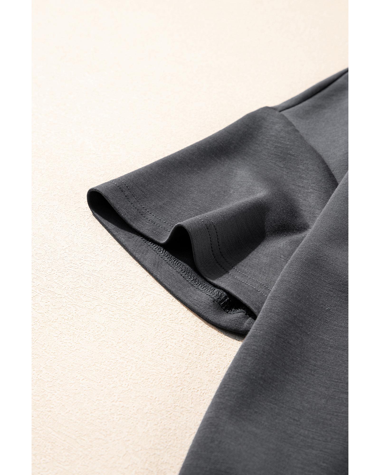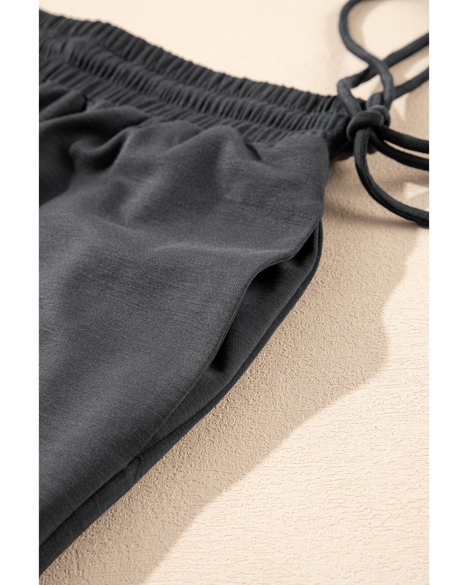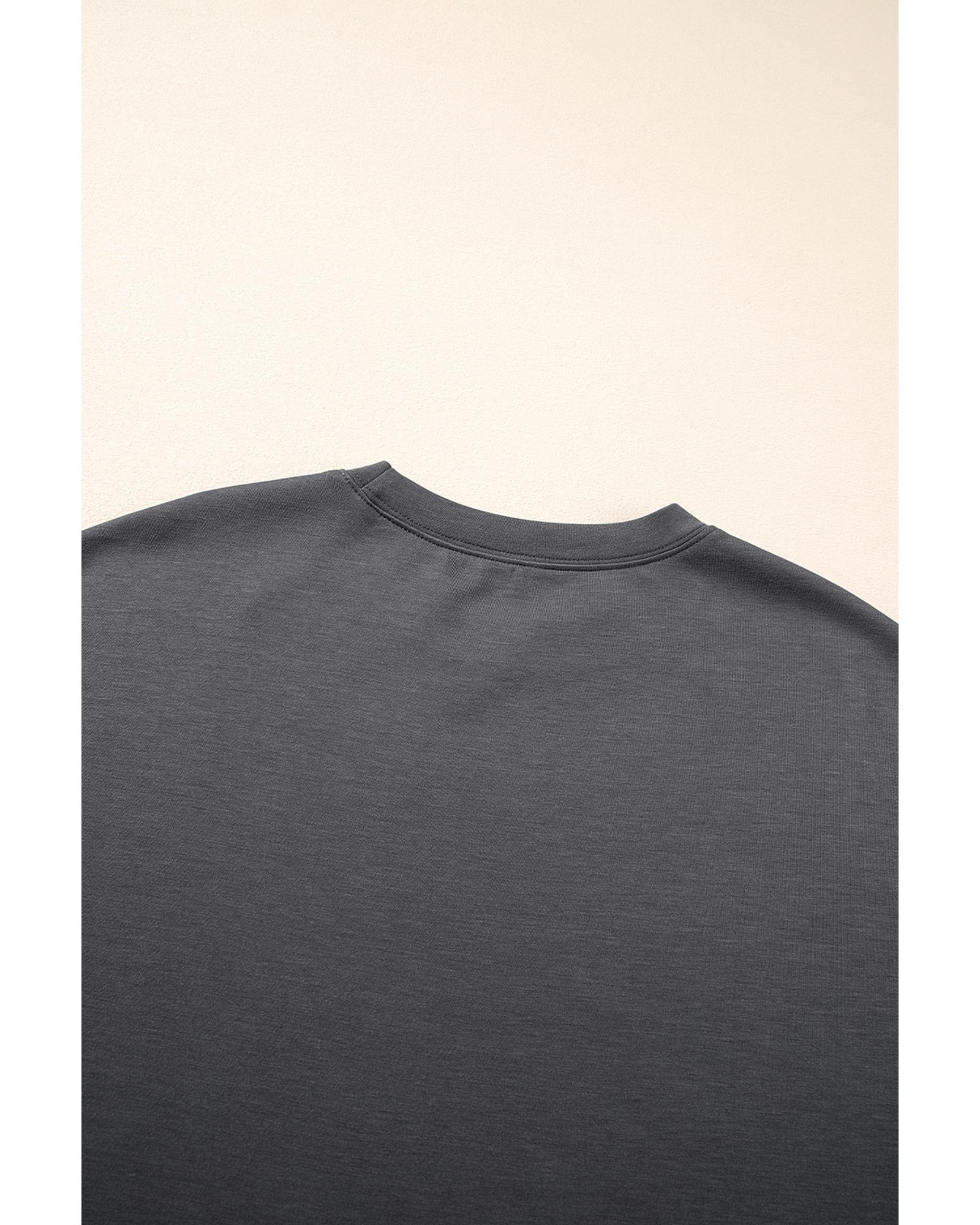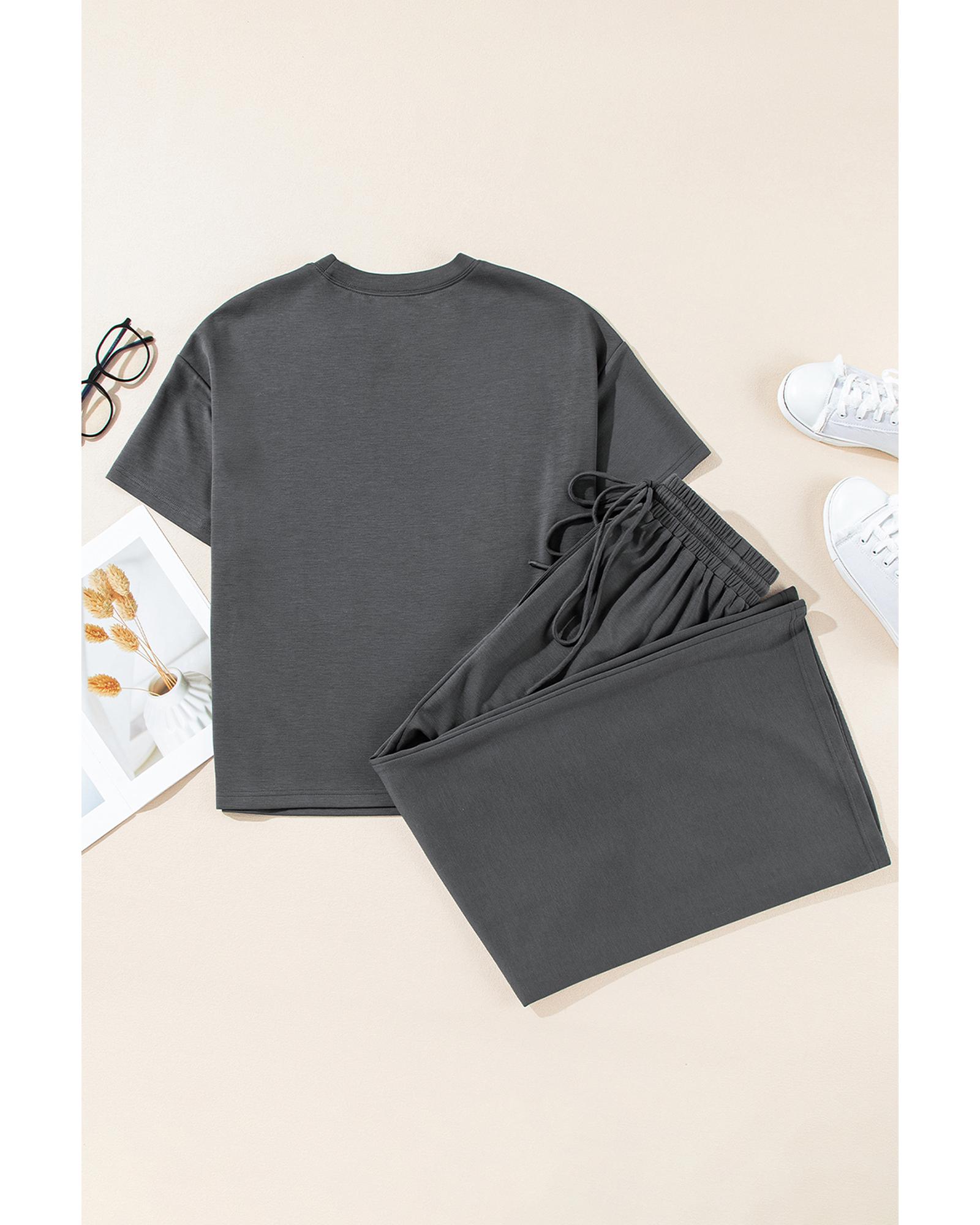 Dark Grey Drawstring Side Crewneck Tee and Loose Pants Set – S