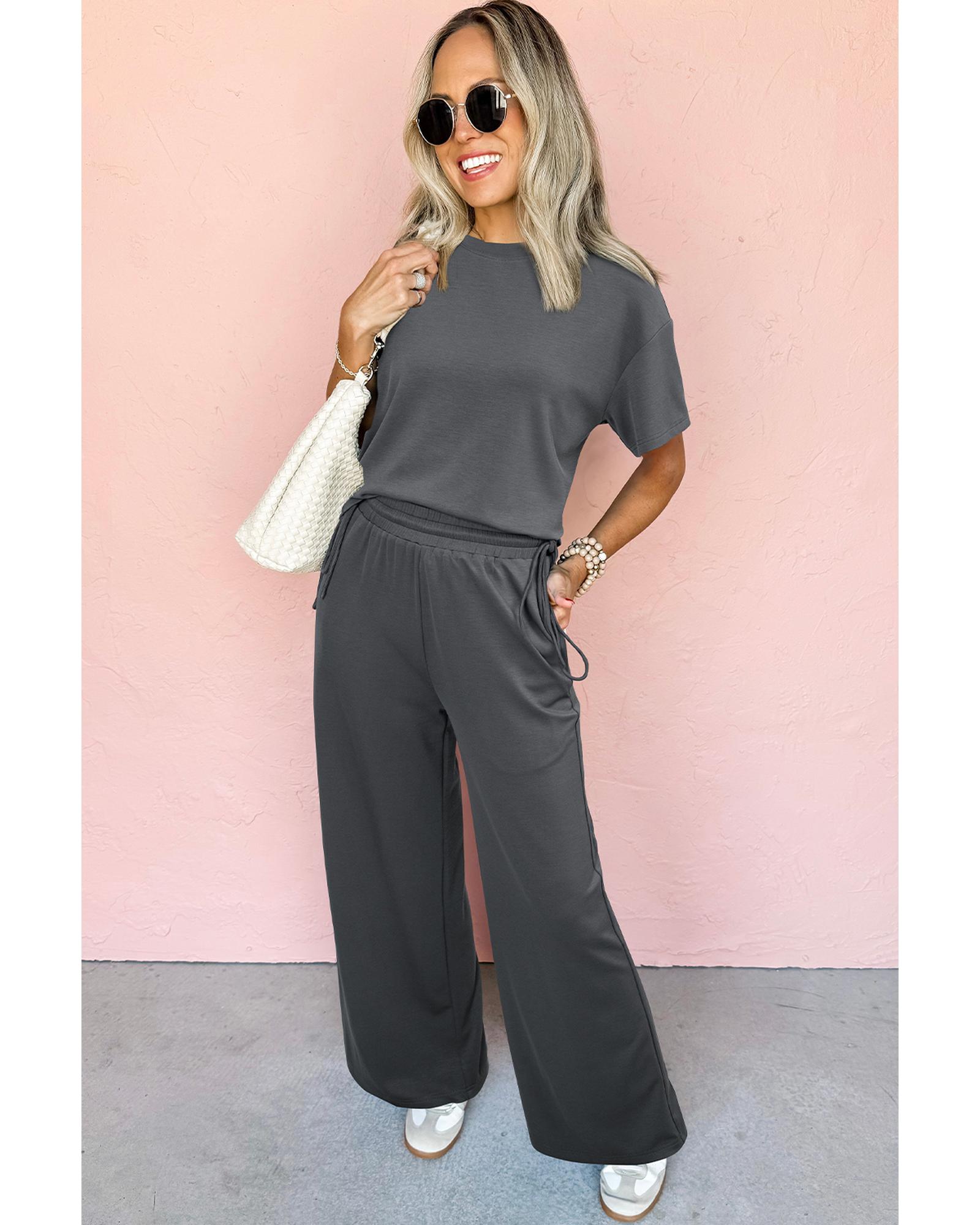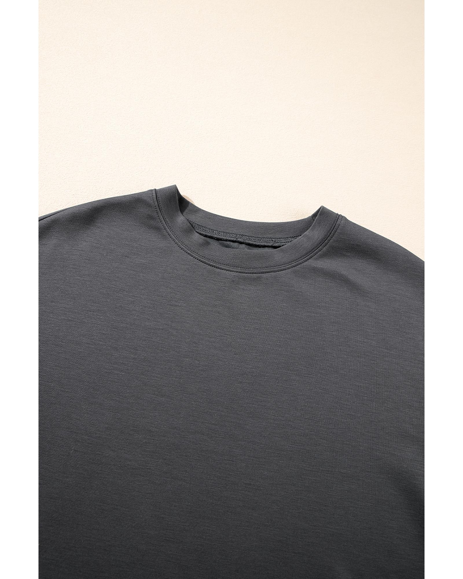 Dark Grey Drawstring Side Crewneck Tee and Loose Pants Set – XL