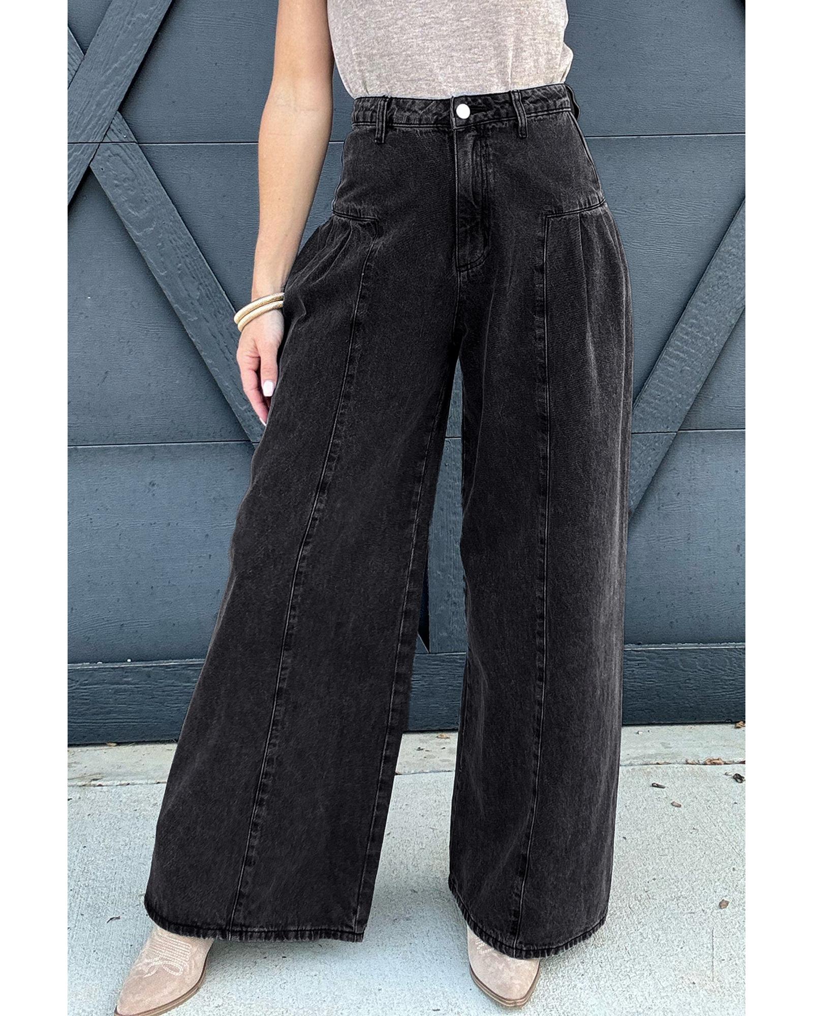 Dark Grey Pleated Wide Leg Mineral Wash Denim Pants – 14 US
