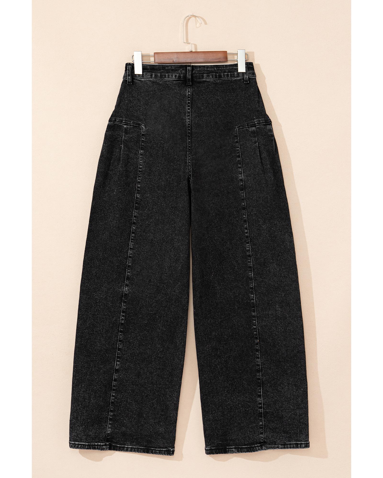 Dark Grey Pleated Wide Leg Mineral Wash Denim Pants – 6 US