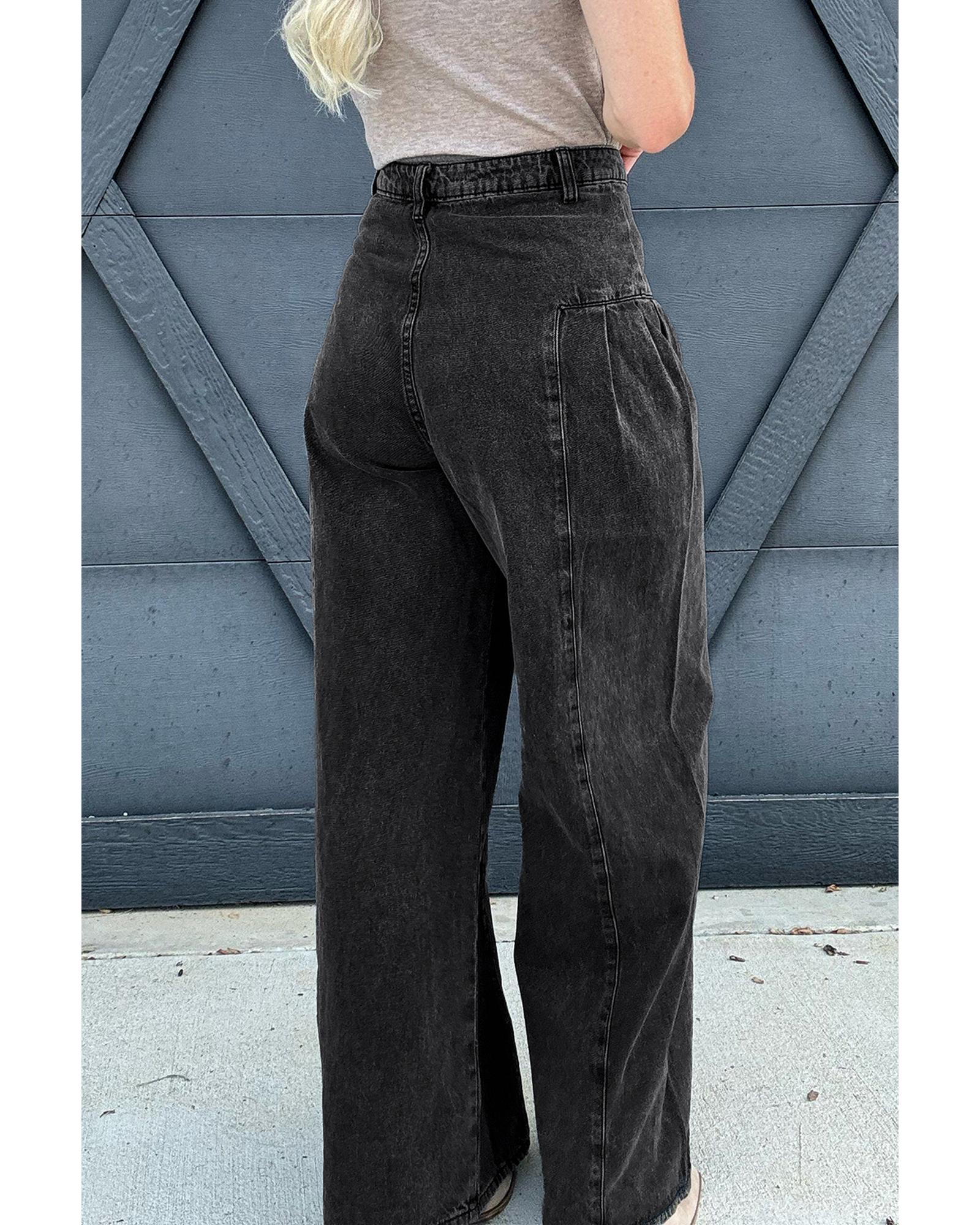 Dark Grey Pleated Wide Leg Mineral Wash Denim Pants – 8 US