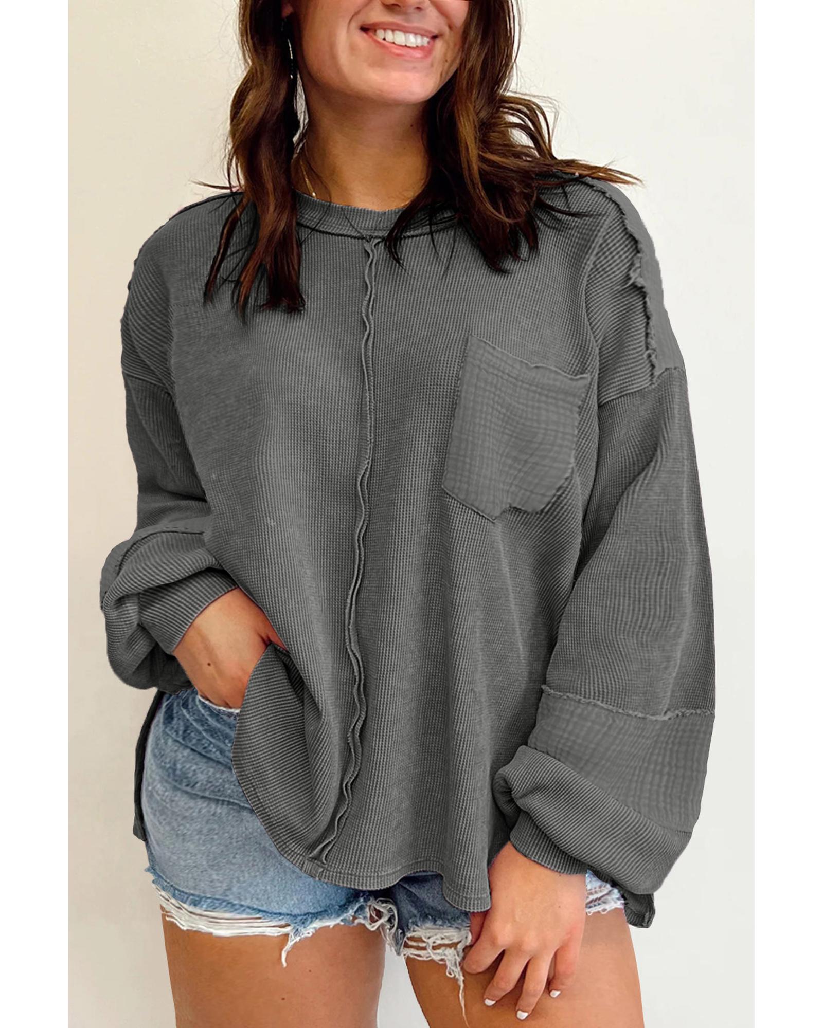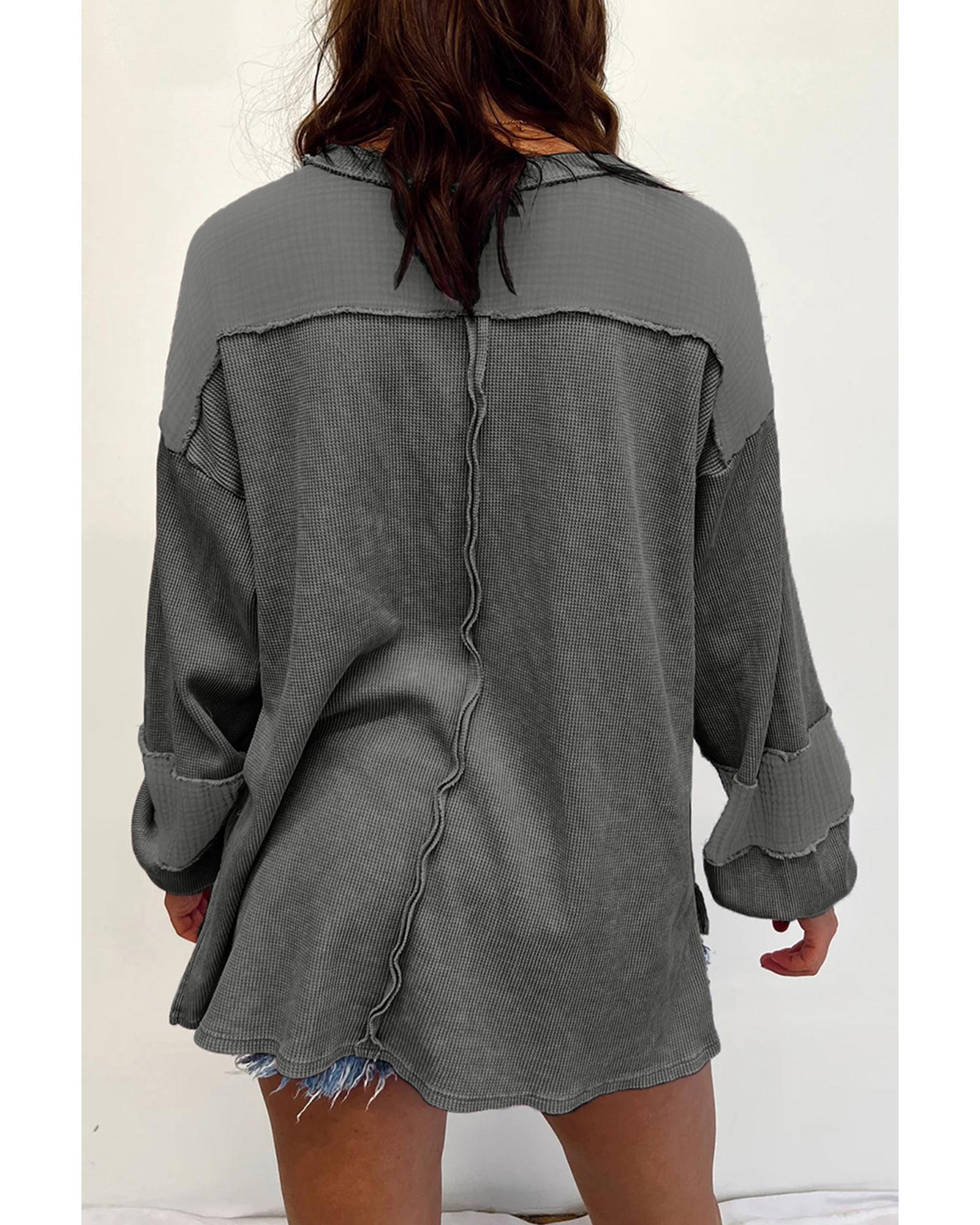 • Dark Grey Plus Size Exposed Seam Crinkle Patchwork Top