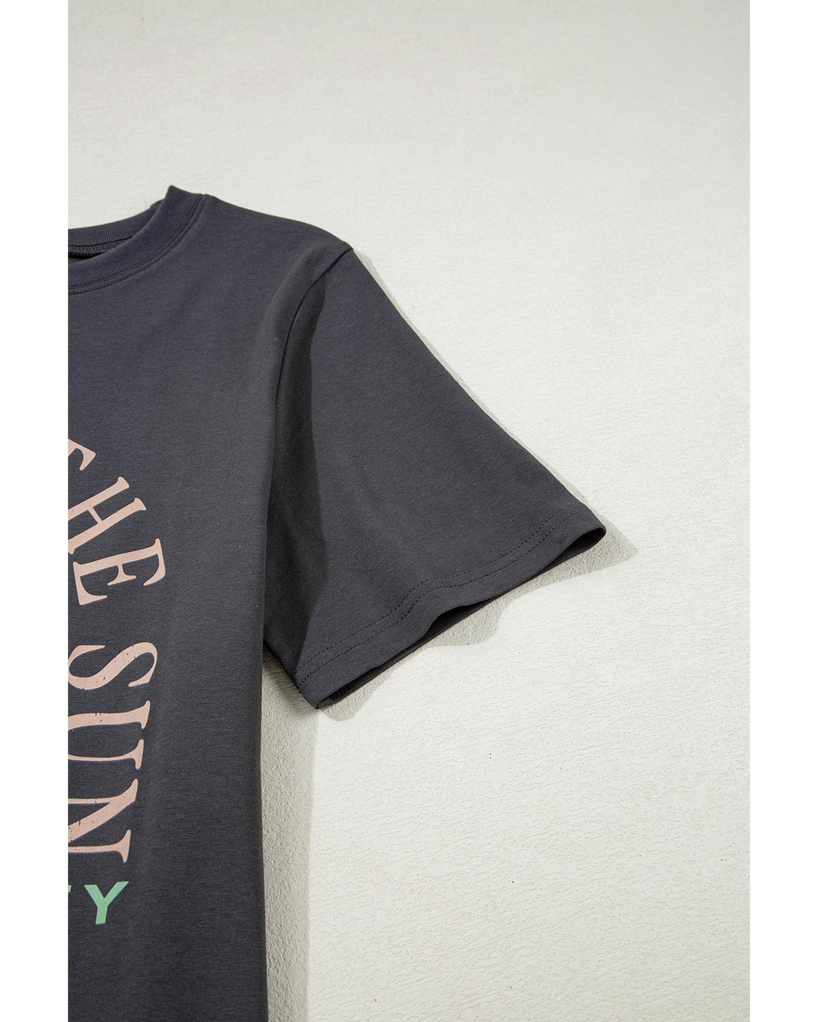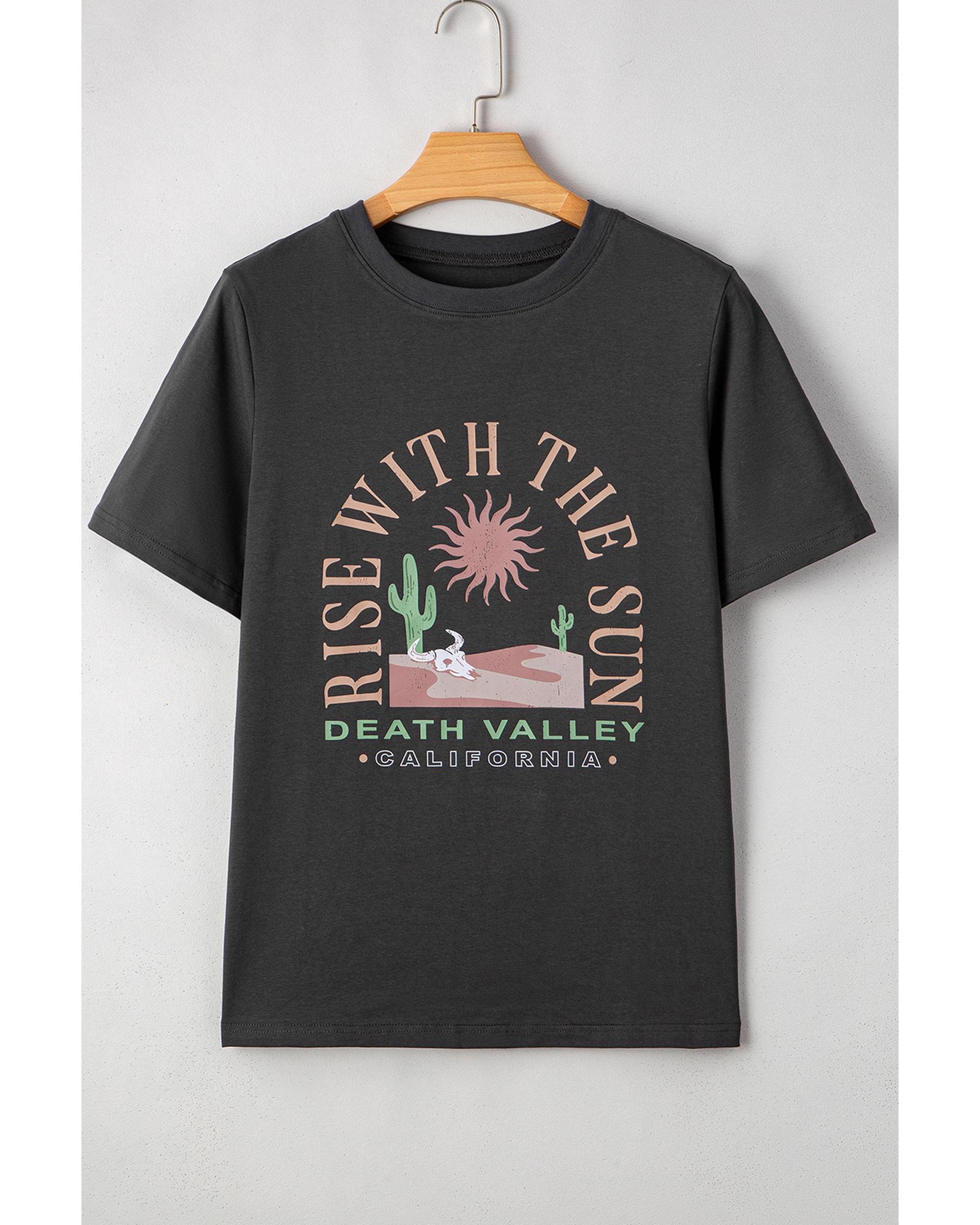 Dark Grey RISE WITH THE SUN Western Fashion Graphic Tee – XL