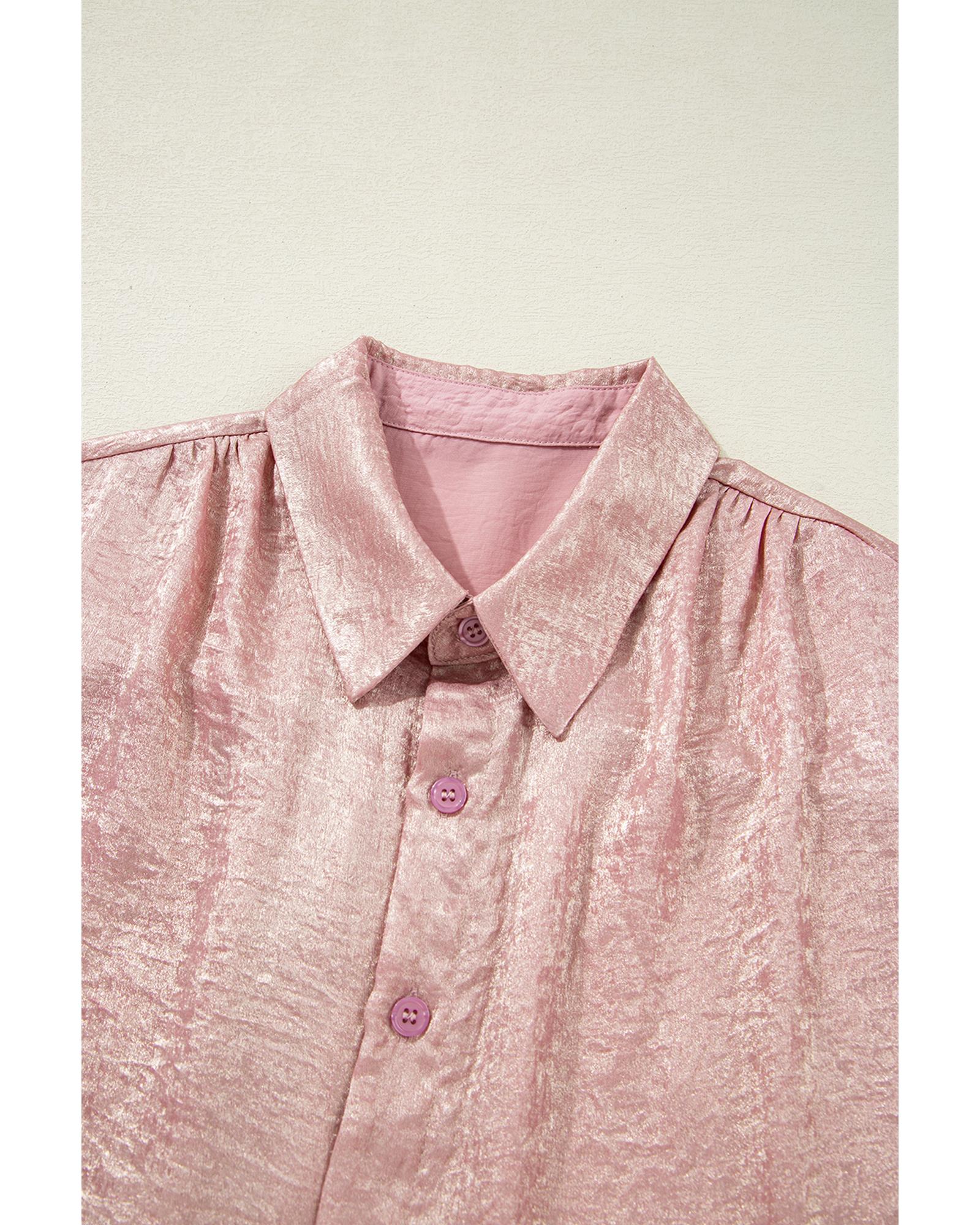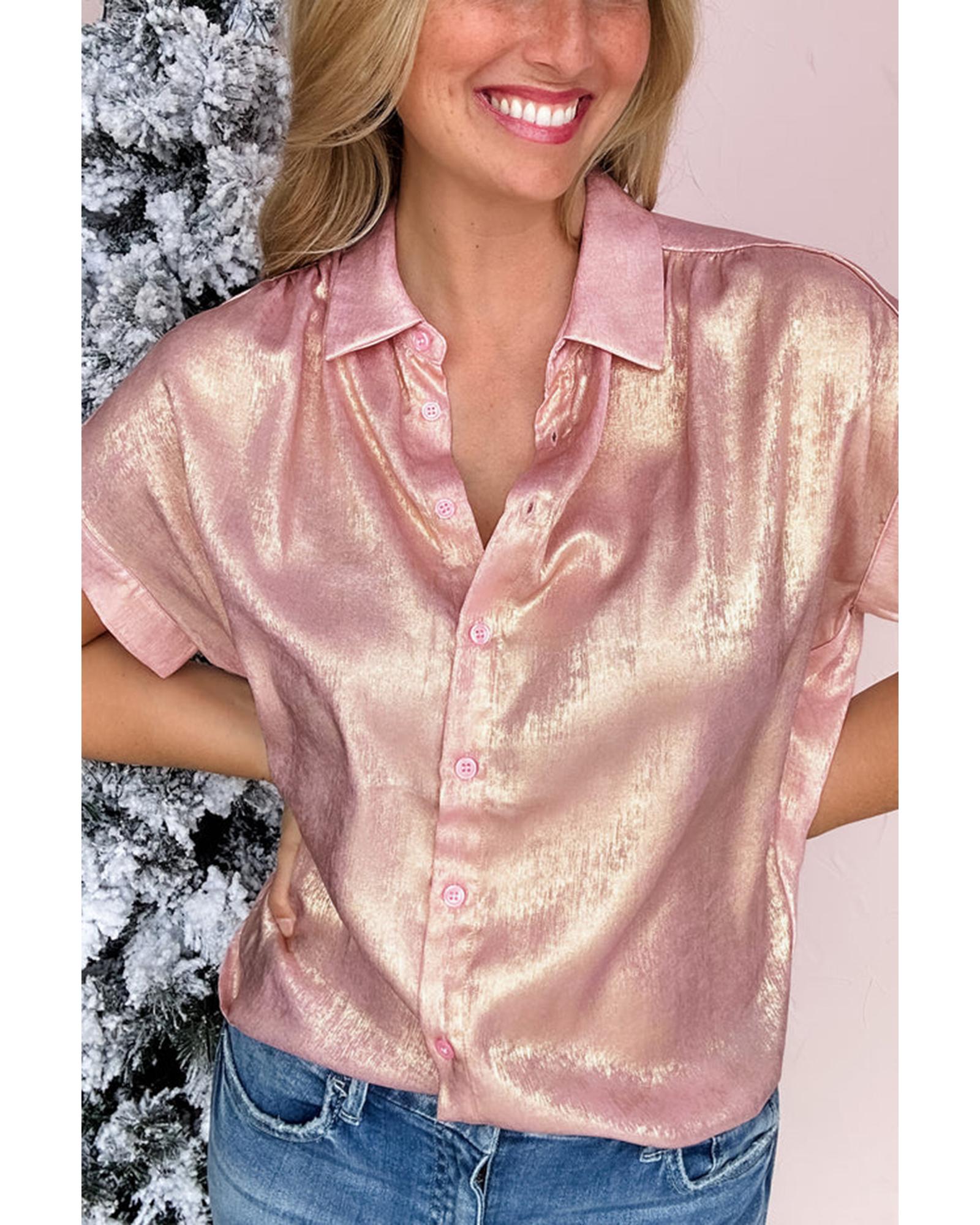 Delicacy Metallic Buttoned Loose Fit Short Sleeve Shirt – M