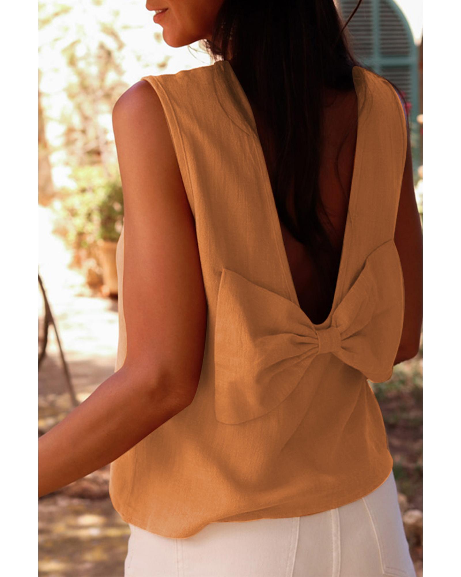 Desert Gold Bowknot V Cut Backless Cotton Tank Top – M