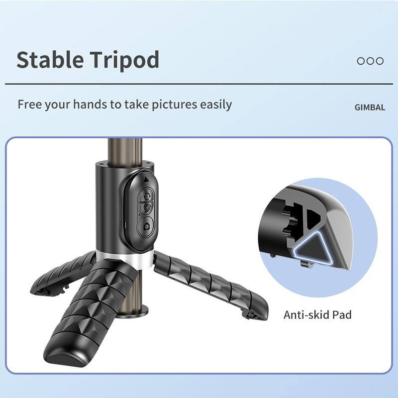 • Stable aluminum alloy pole, anti-slip mobile phone clip, and tripod for stabilizing and using as a selfie stick