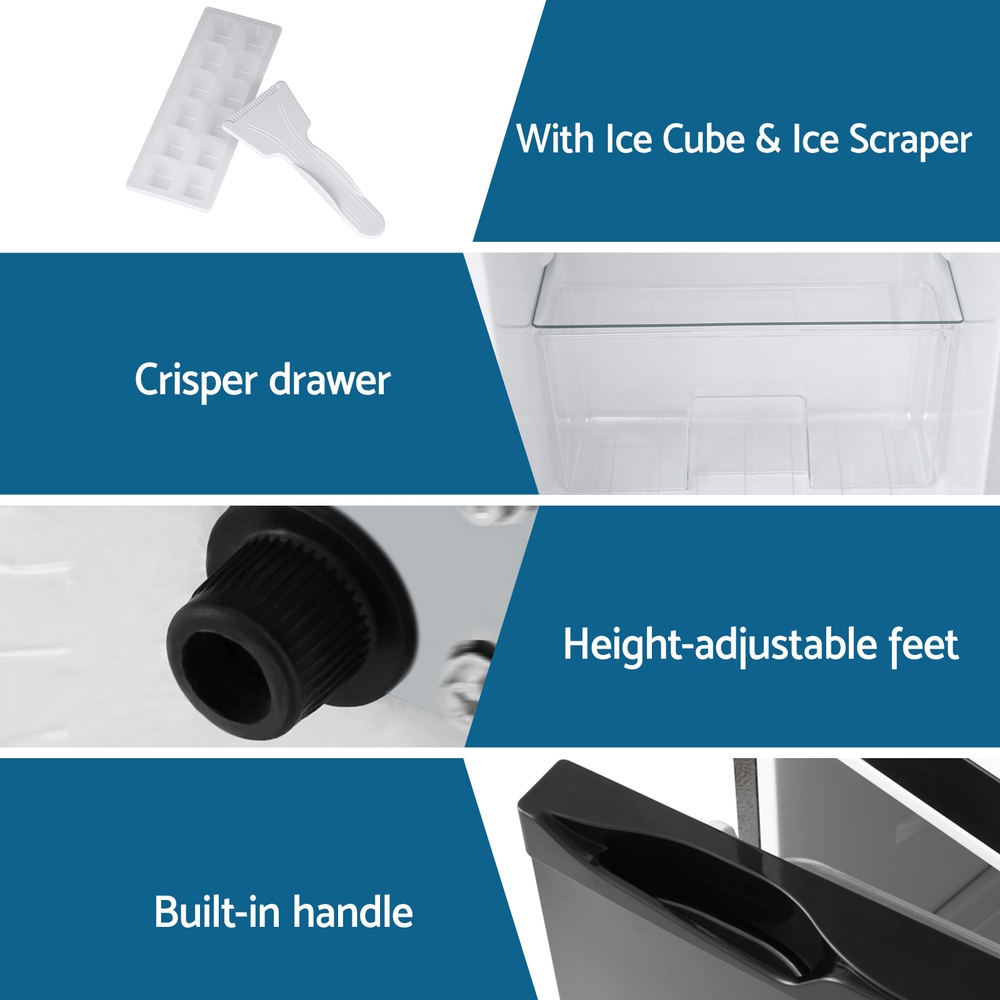 The Devanti 122L Bar Fridge is the perfect compact refrigerator for any space. This freestanding two-door mini fridge features a genuine freezer, perfect for ice and snacks. With 7-stage temperature control and an interior light, it’s the ideal bar fridge with freezer for your home, garage or office.