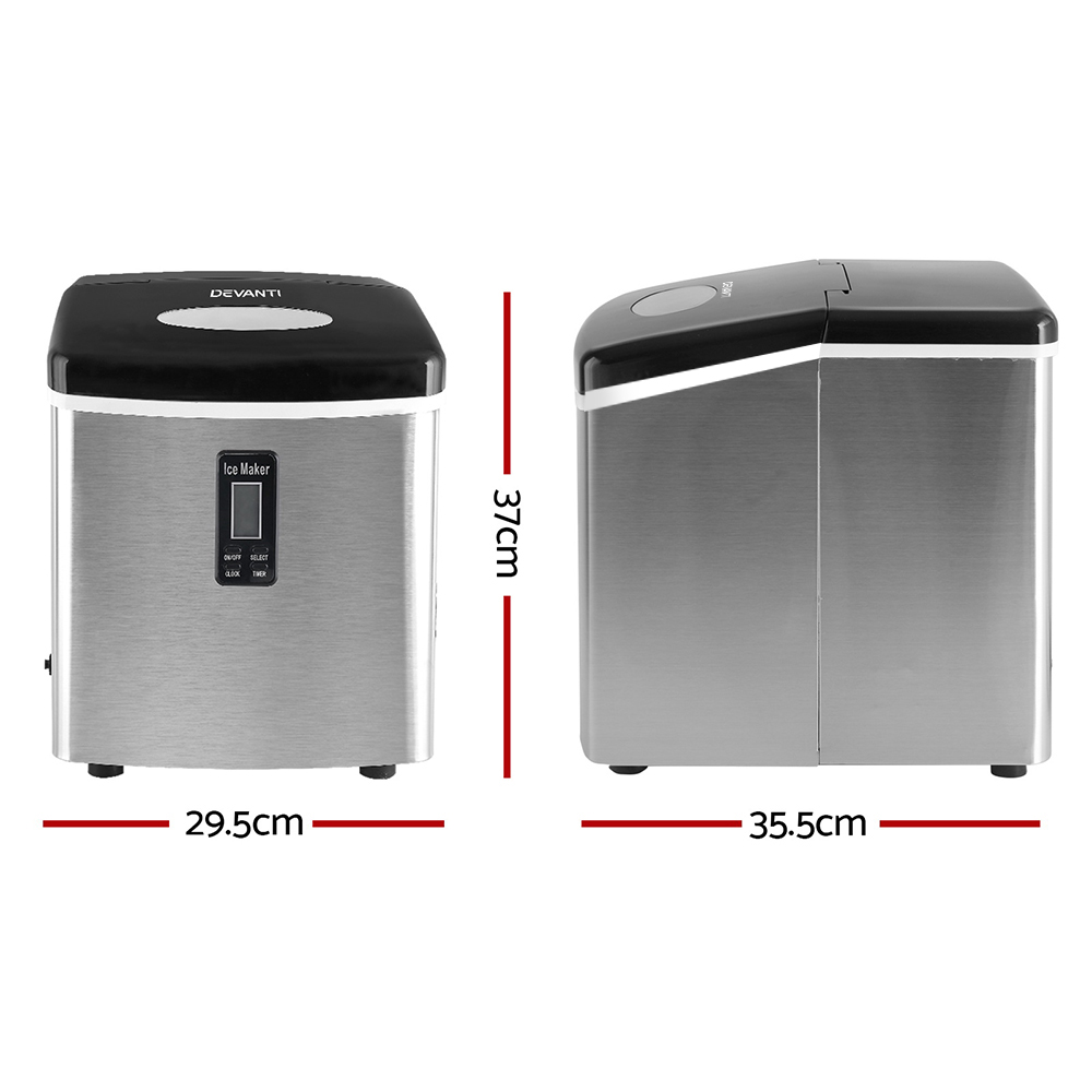 Devanti 2L Portable Ice Cuber Maker & Water Dispenser - Silver