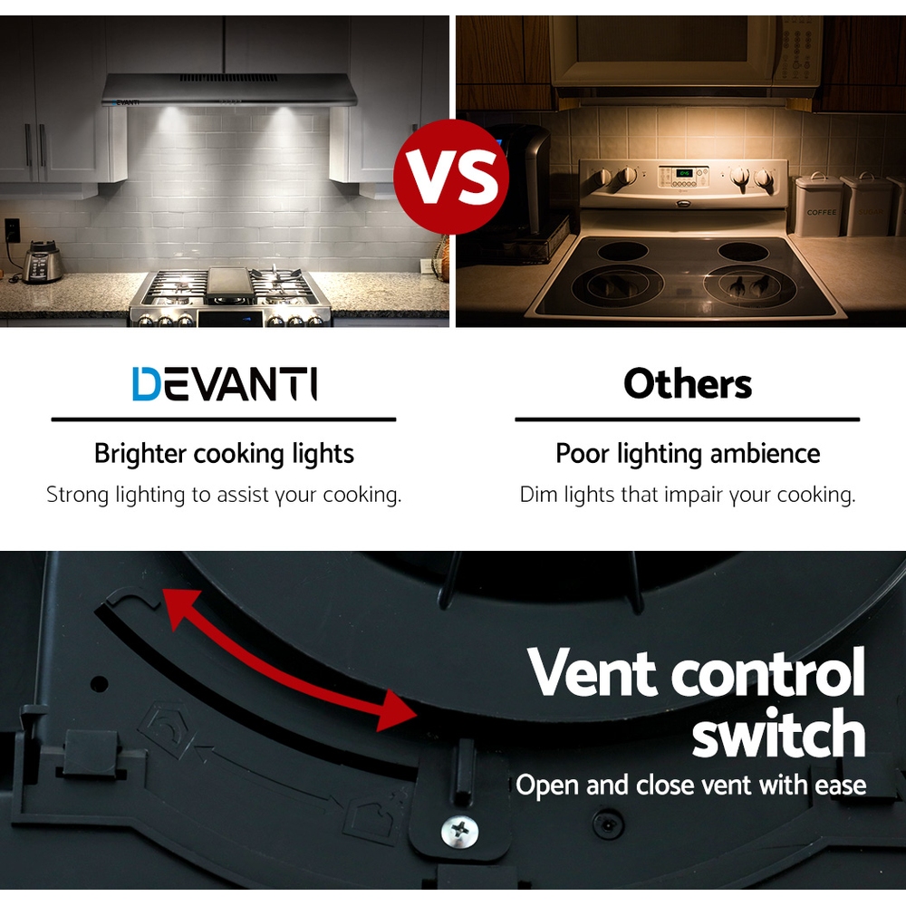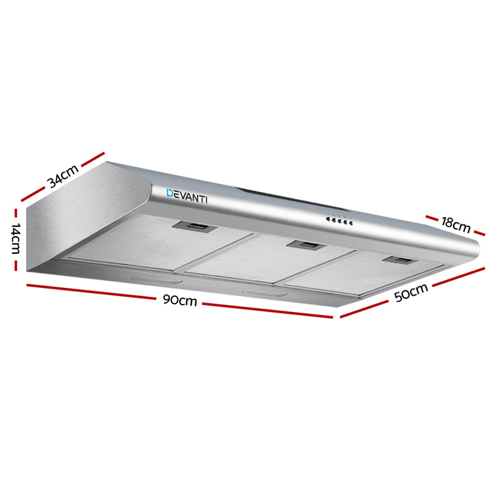 Devanti 900mm Range Hood 90cm Rangehood Stainless Steel