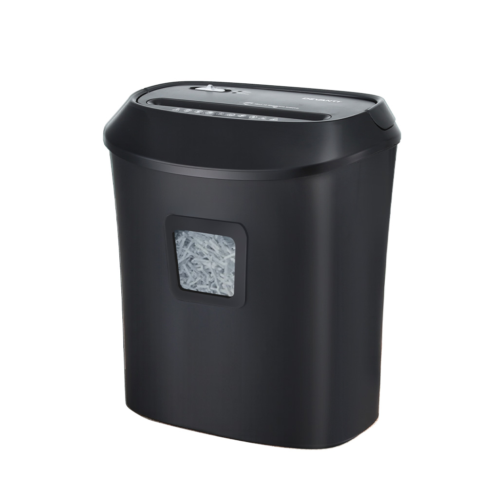 Keep your documents safe with the Devanti cross-cut shredder. Shreds up to 10 A4 sheets and credit cards, with optional CD/DVD shredding. Features a 21L bin with viewing window, reverse function, auto stop, overheat protection, and 3-min continuous use for home or office.