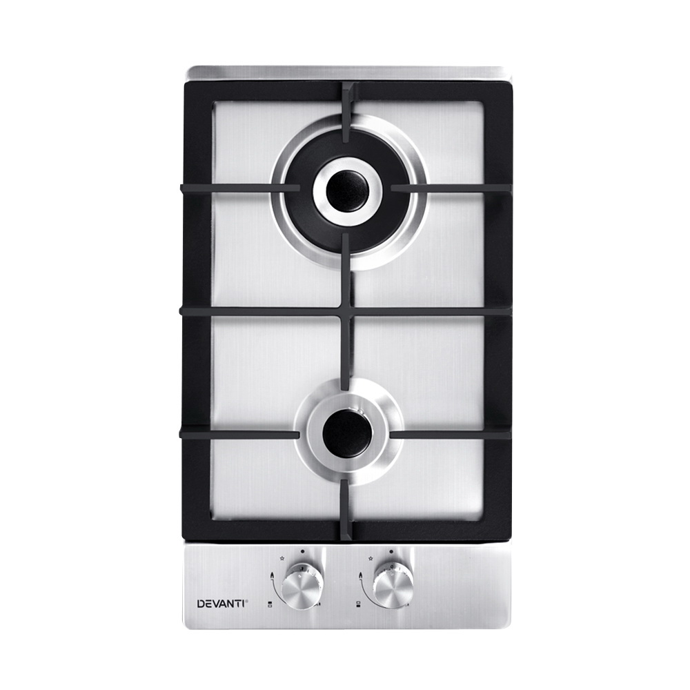 Devanti Gas Cooktop 30cm 2 Burner Silvir