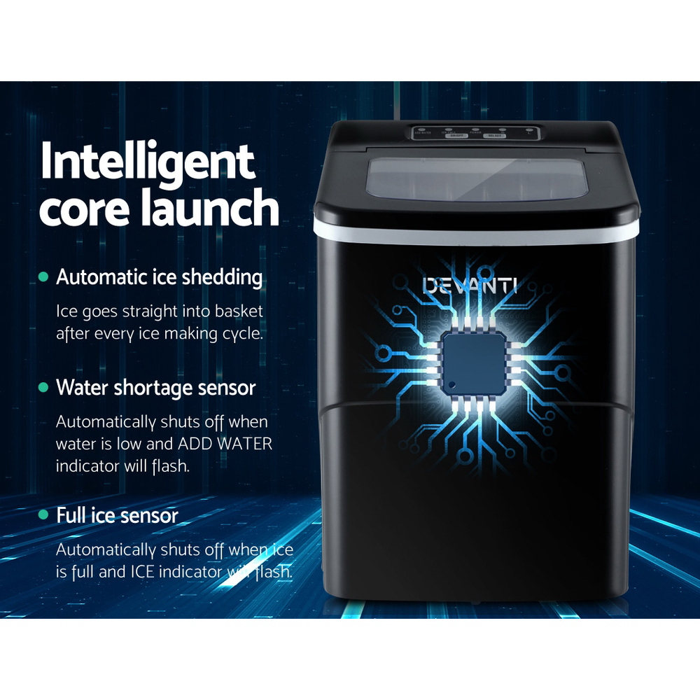 DEVANTi Portable Ice Cube Maker Machine 2L Home Bar Benchtop Easy Quick Black