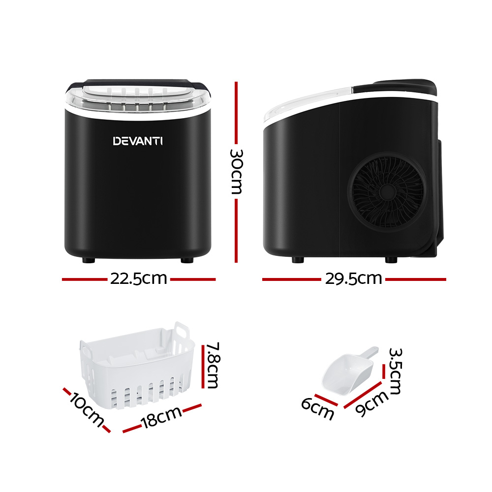Devanti Portable Ice Maker Machine Ice Cube Tray 12kg Bar Countertop Black