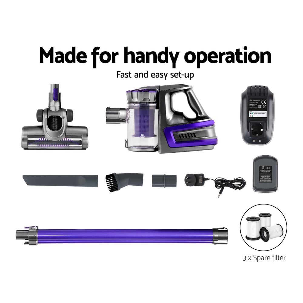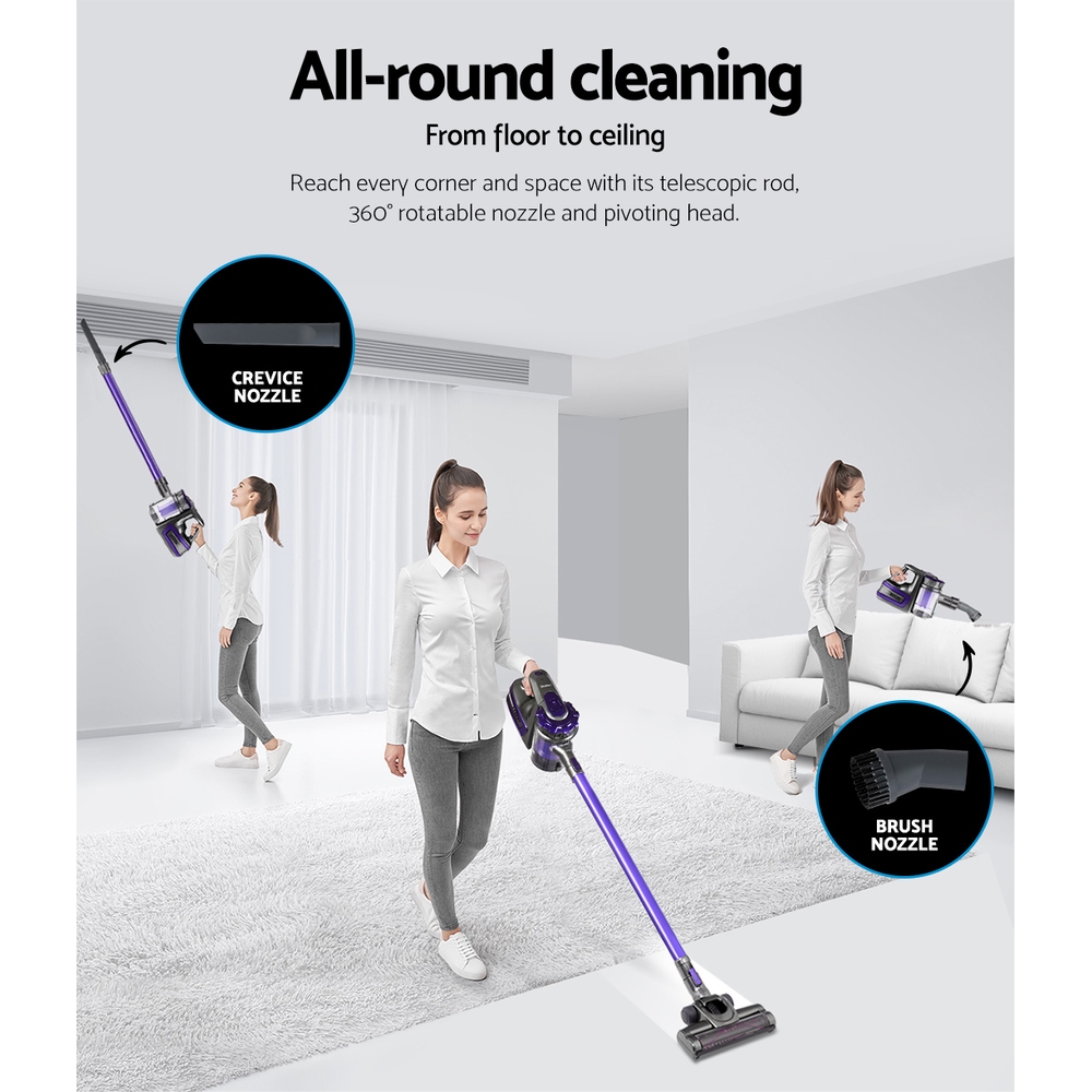 Devanti Stick Vacuum Cleaner Cordless HEPA Filter Purple 150W Original price was: $193.99.Current price is: $104.99.