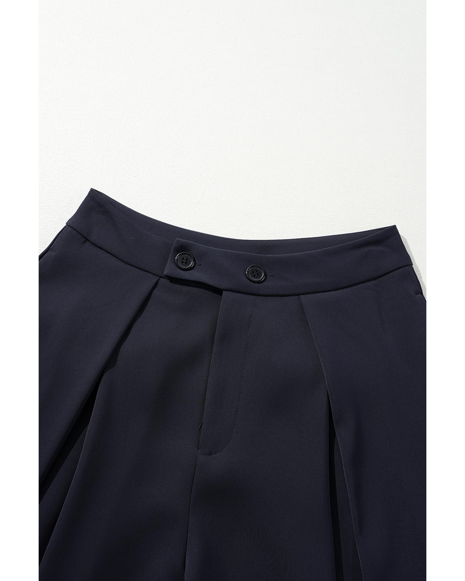 Dirty blue Dual Buttoned High Waist Pleated Wide Leg Pants - L