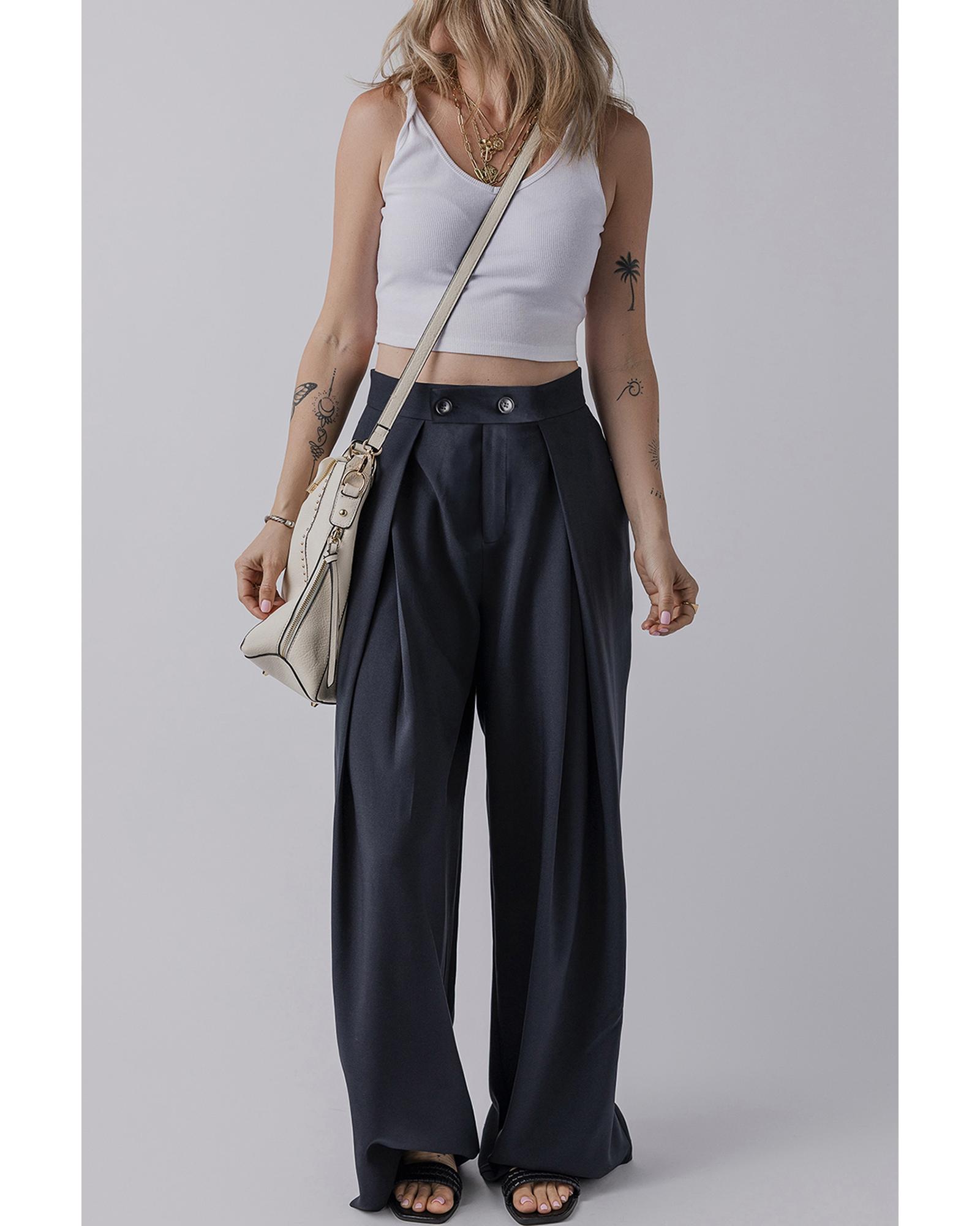 Dirty blue Dual Buttoned High Waist Pleated Wide Leg Pants – S