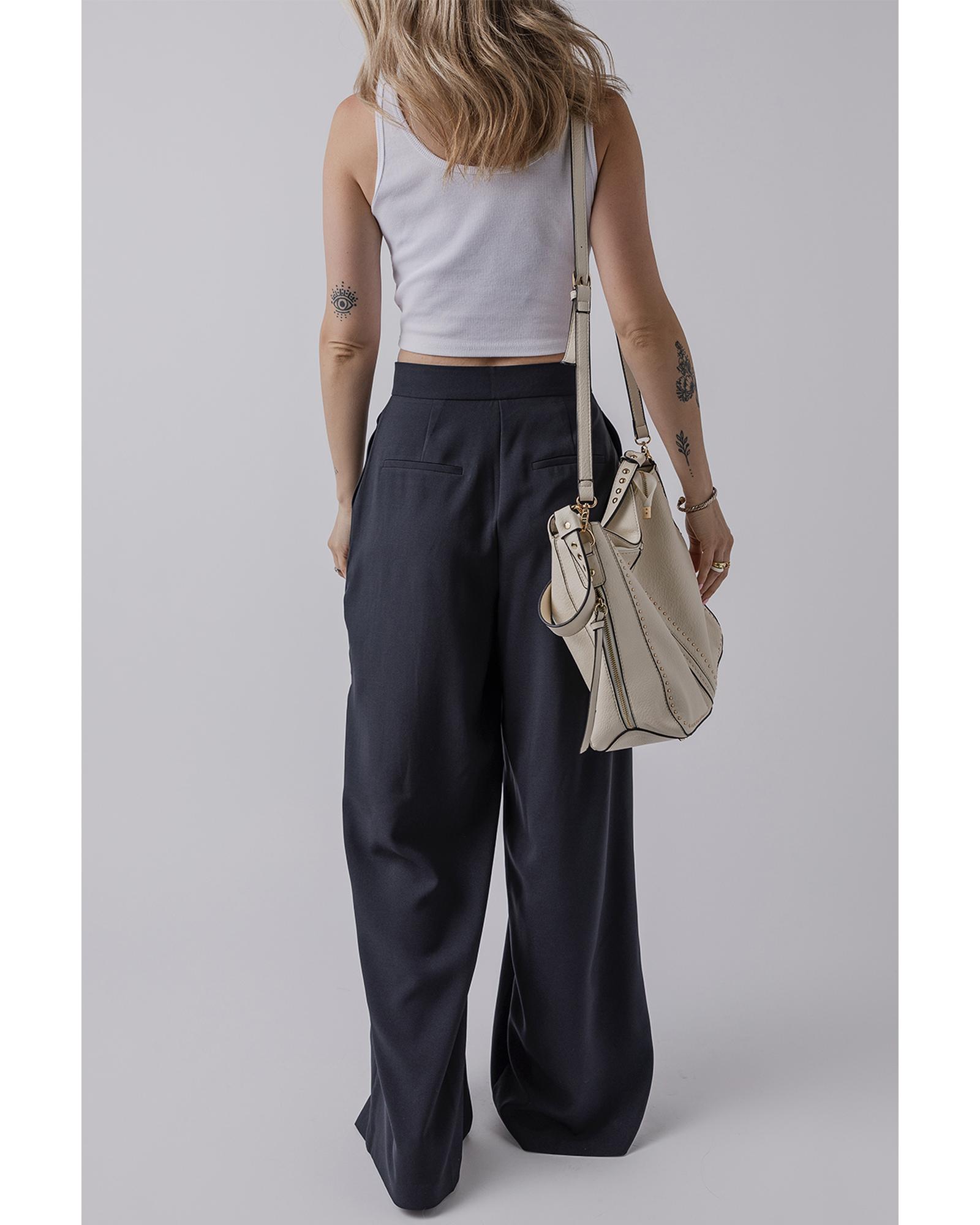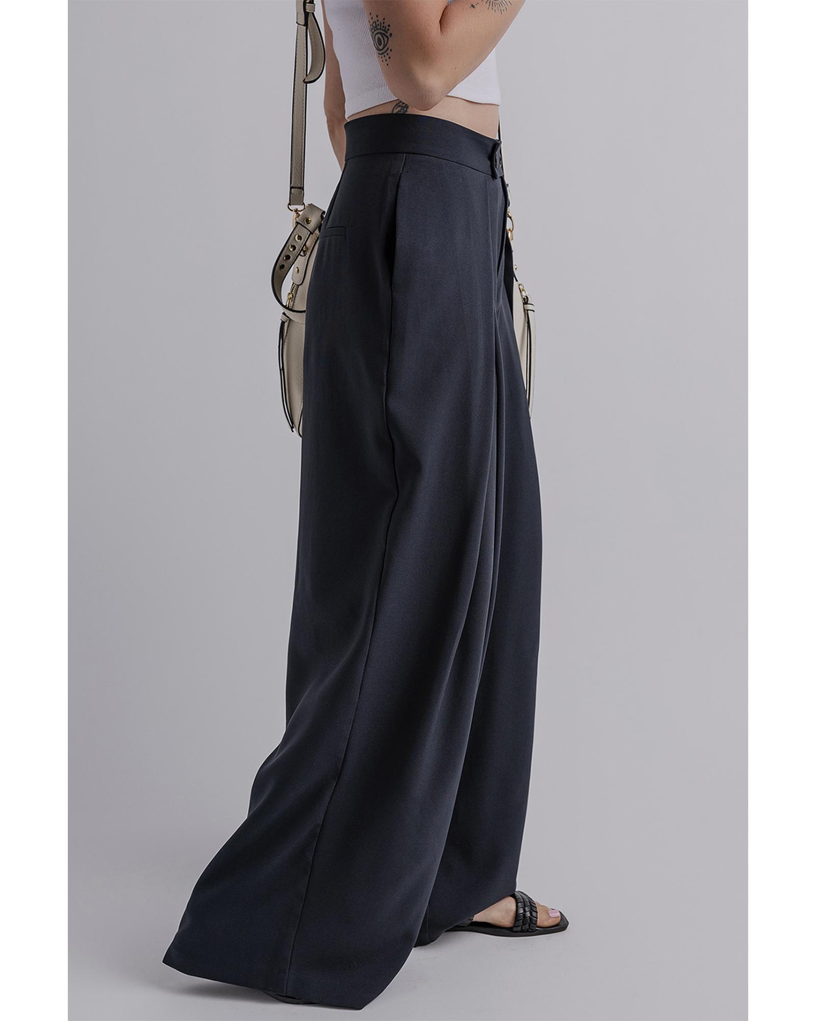 Dirty blue Dual Buttoned High Waist Pleated Wide Leg Pants – XL