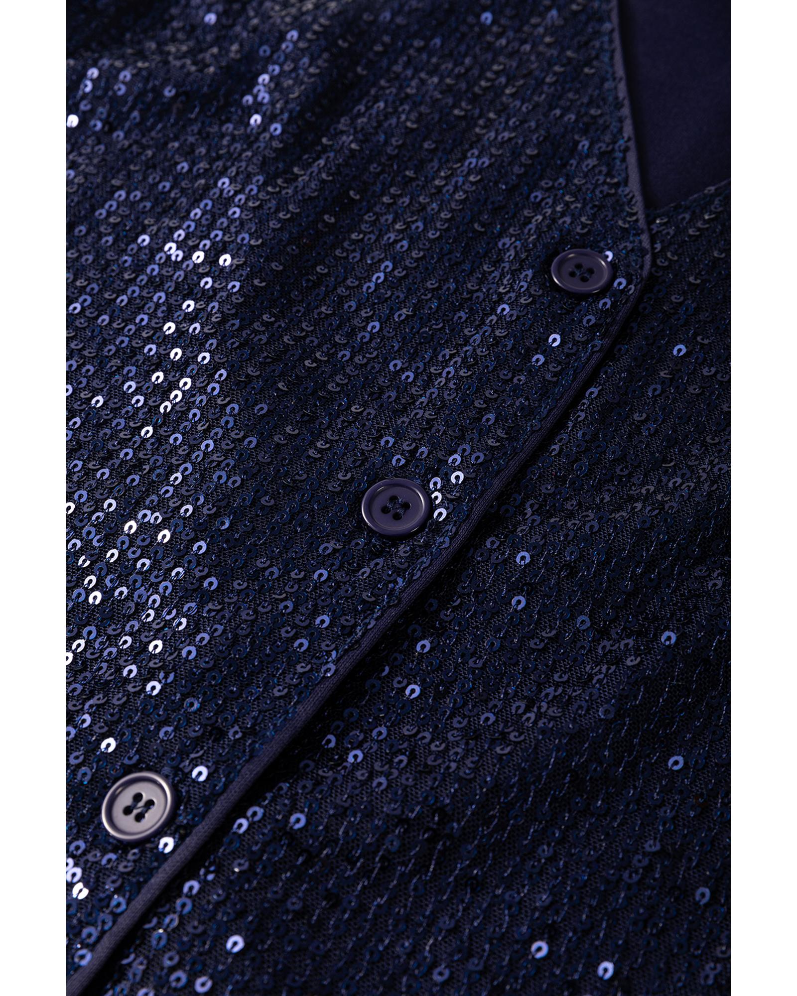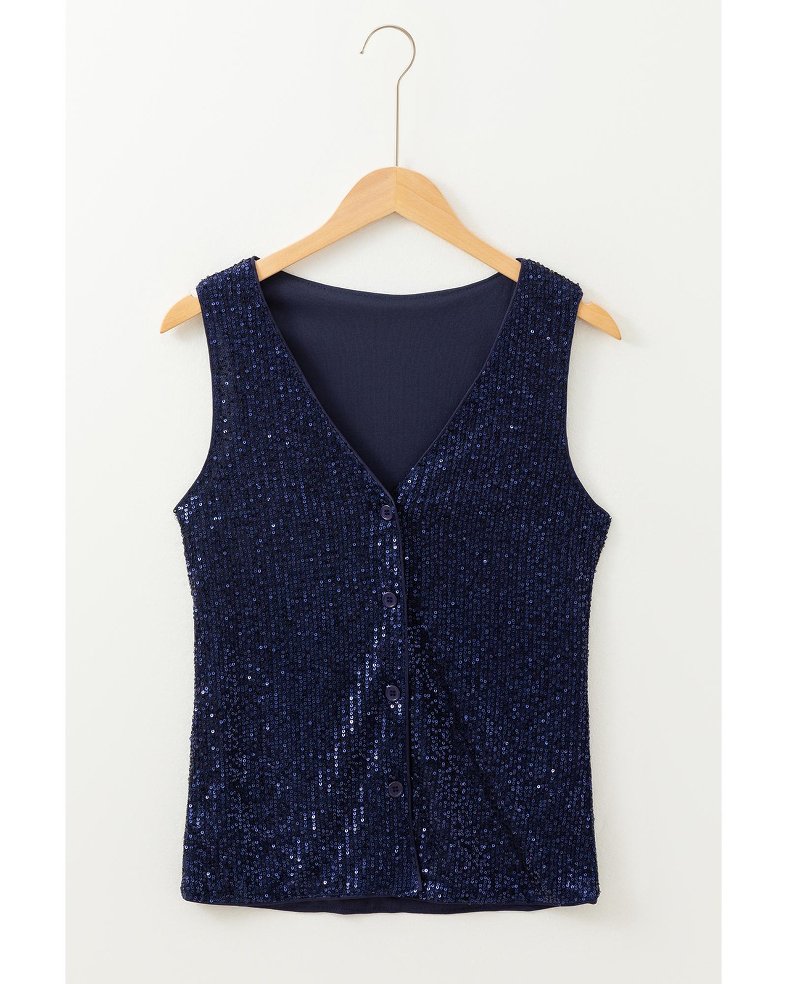Dirty blue Sequined Deep V Neck Buttoned Tank Top – L