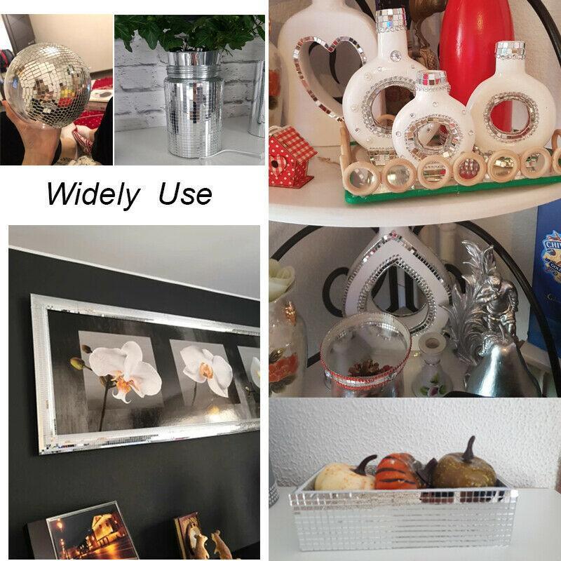 Enhance your living space with our DIY Mini Mosaic Tiles! These self-adhesive square mirror tiles are perfect for adding a touch of glamour and intrigue to any wall or project. With a pre-cut, self-adhesive backing, these tiles are a breeze to install without the hassle of glue. Plus, the ability to combine them in countless configurations ensures a unique design to suit your style. Made from eco-friendly acrylic, these tiles are not only aesthetically pleasing but also environmentally conscious. Whether you’re refreshing a room, creating a disco ball or working on a craft project, these tiles offer the versatility and elegance you’re looking for.