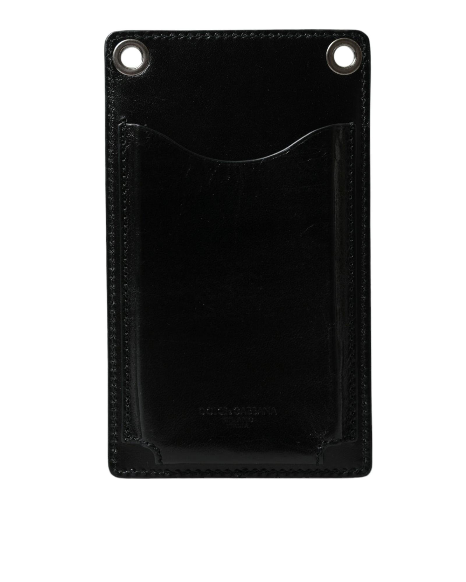 Dolce & Gabbana Men’s Black Calf Leather Zip Logo Shoulder Neck Strap Wallet – One Size