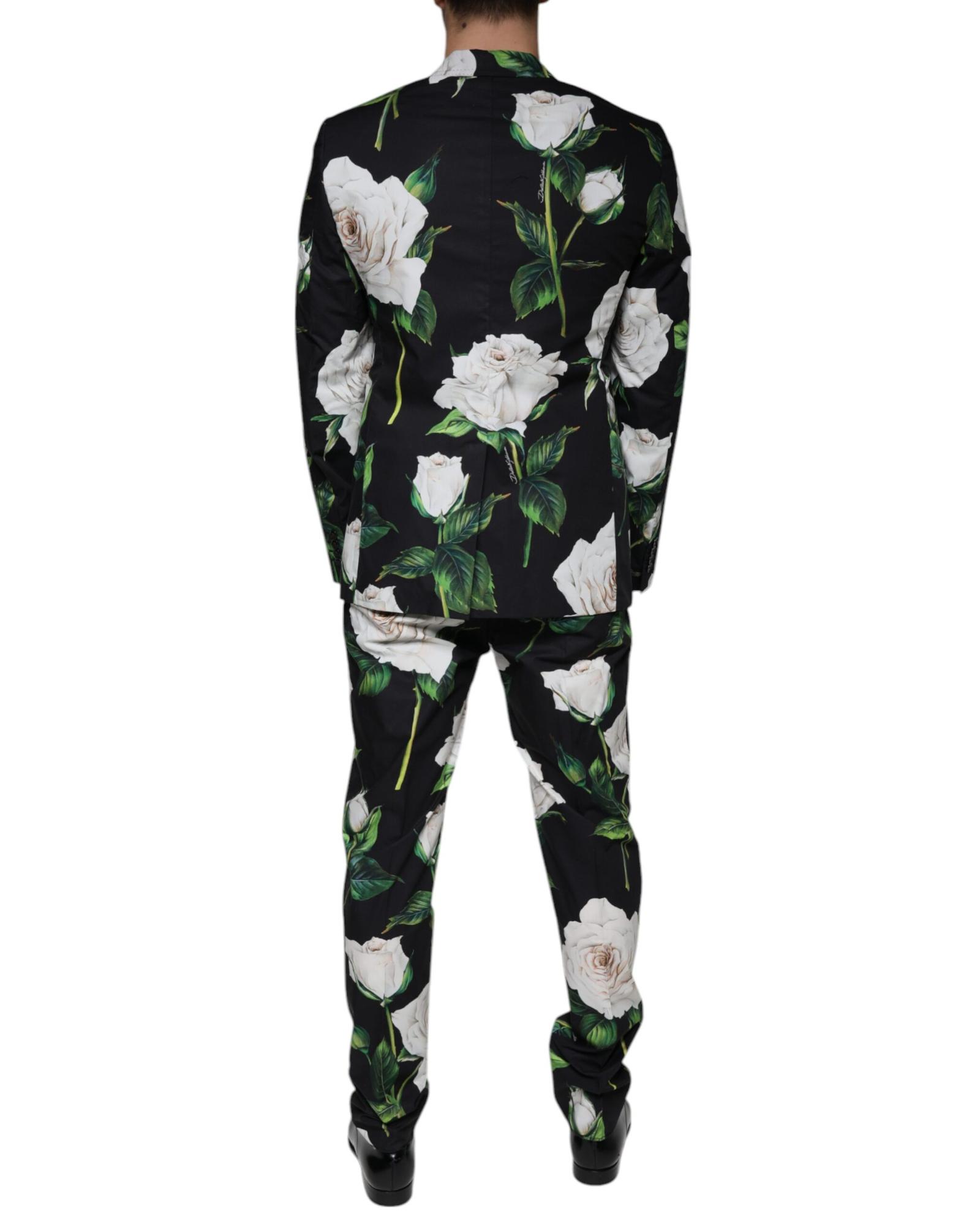 Dolce & Gabbana Men’s Black Rose Cotton Formal 2 Piece Suit – 50 IT