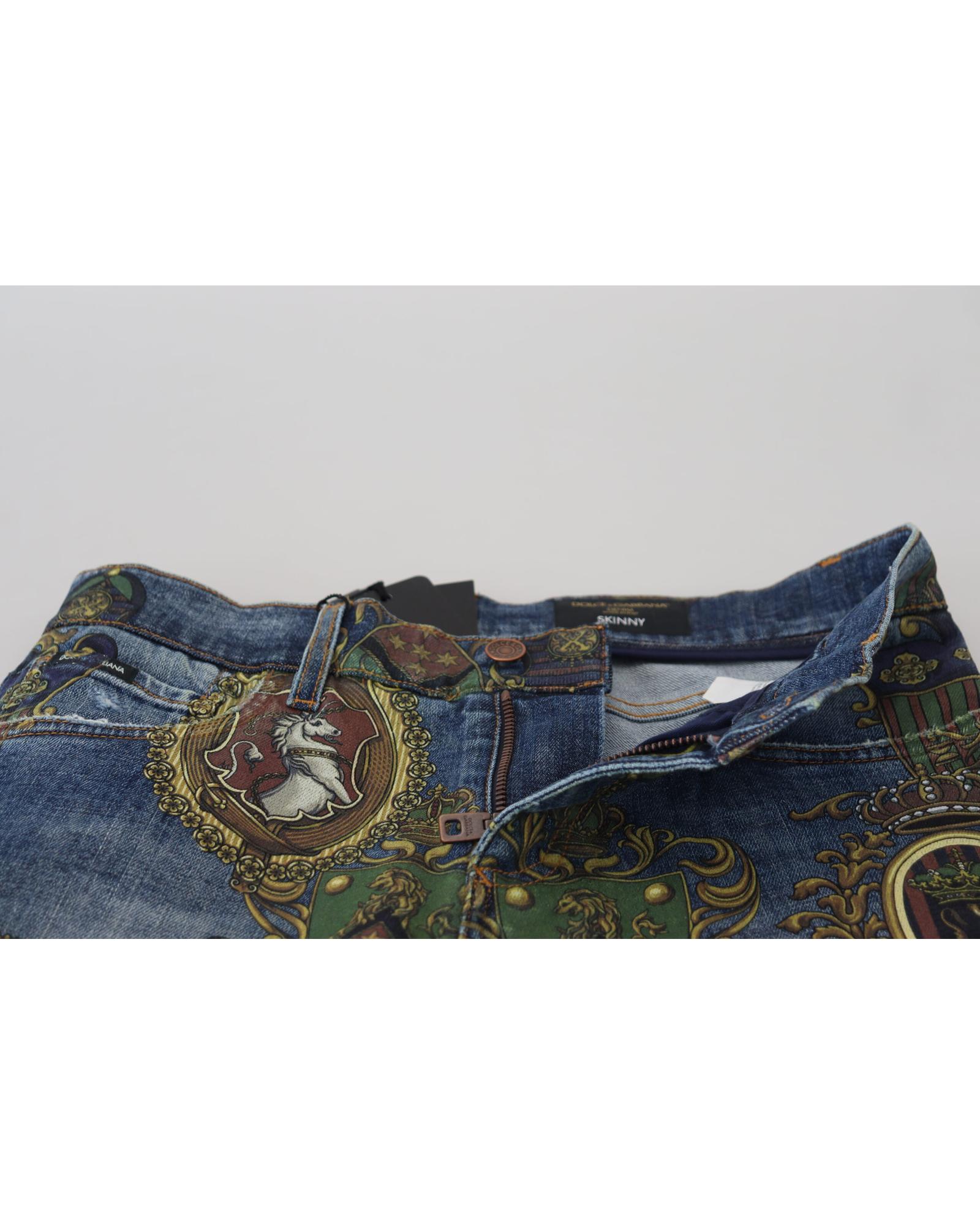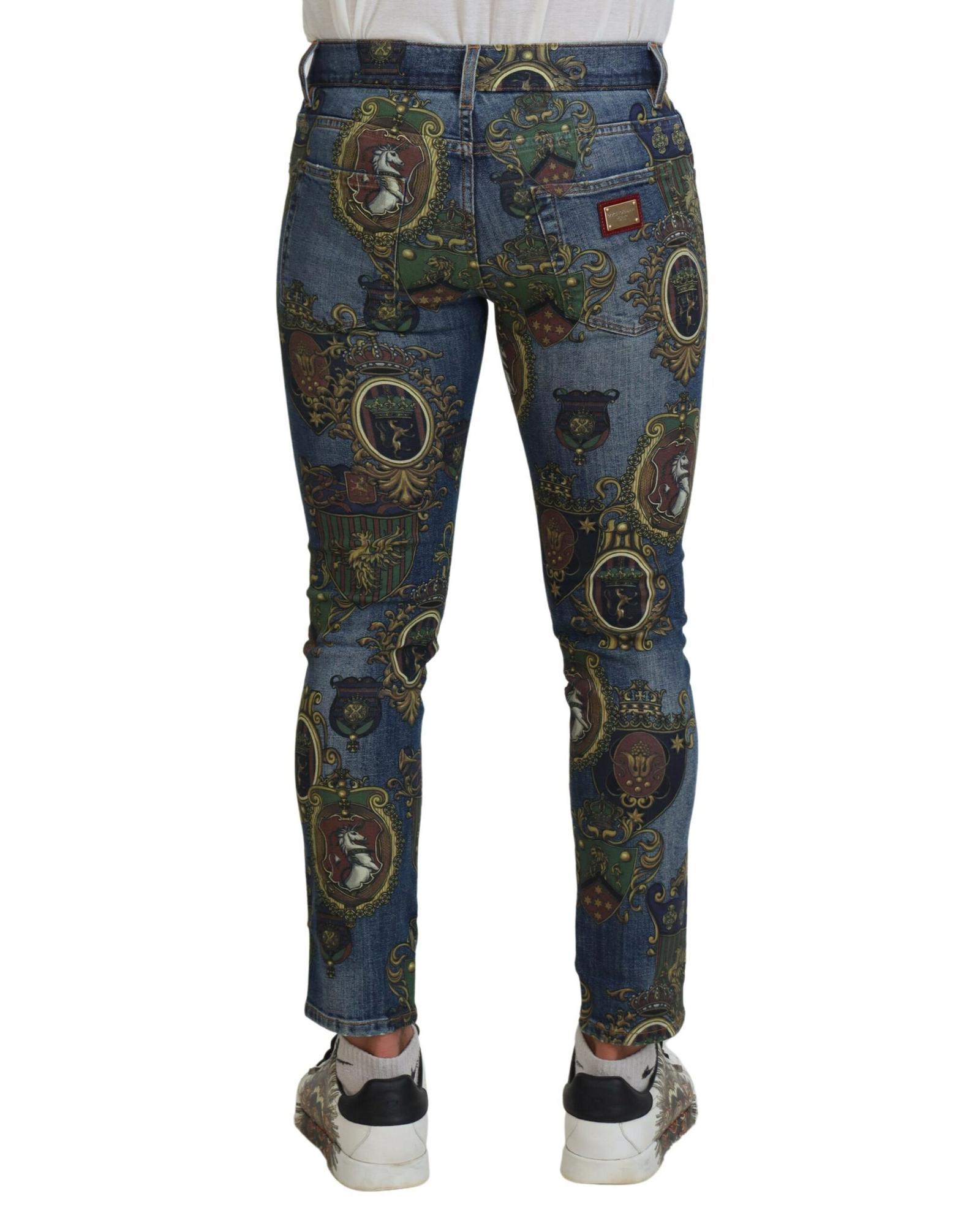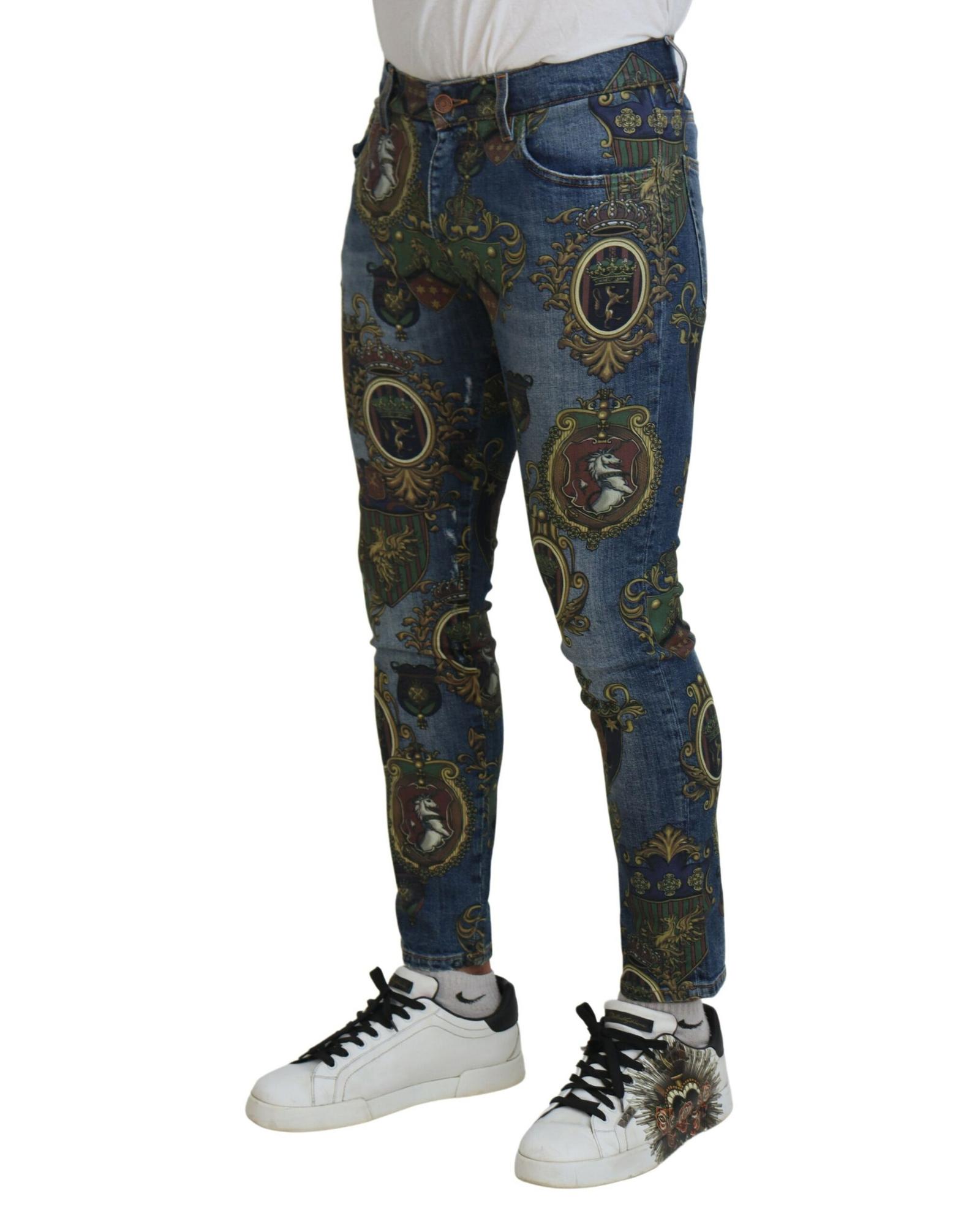 Dolce & Gabbana Men’s Blue Medal Print Slim Fit Cotton Jeans – 46 IT