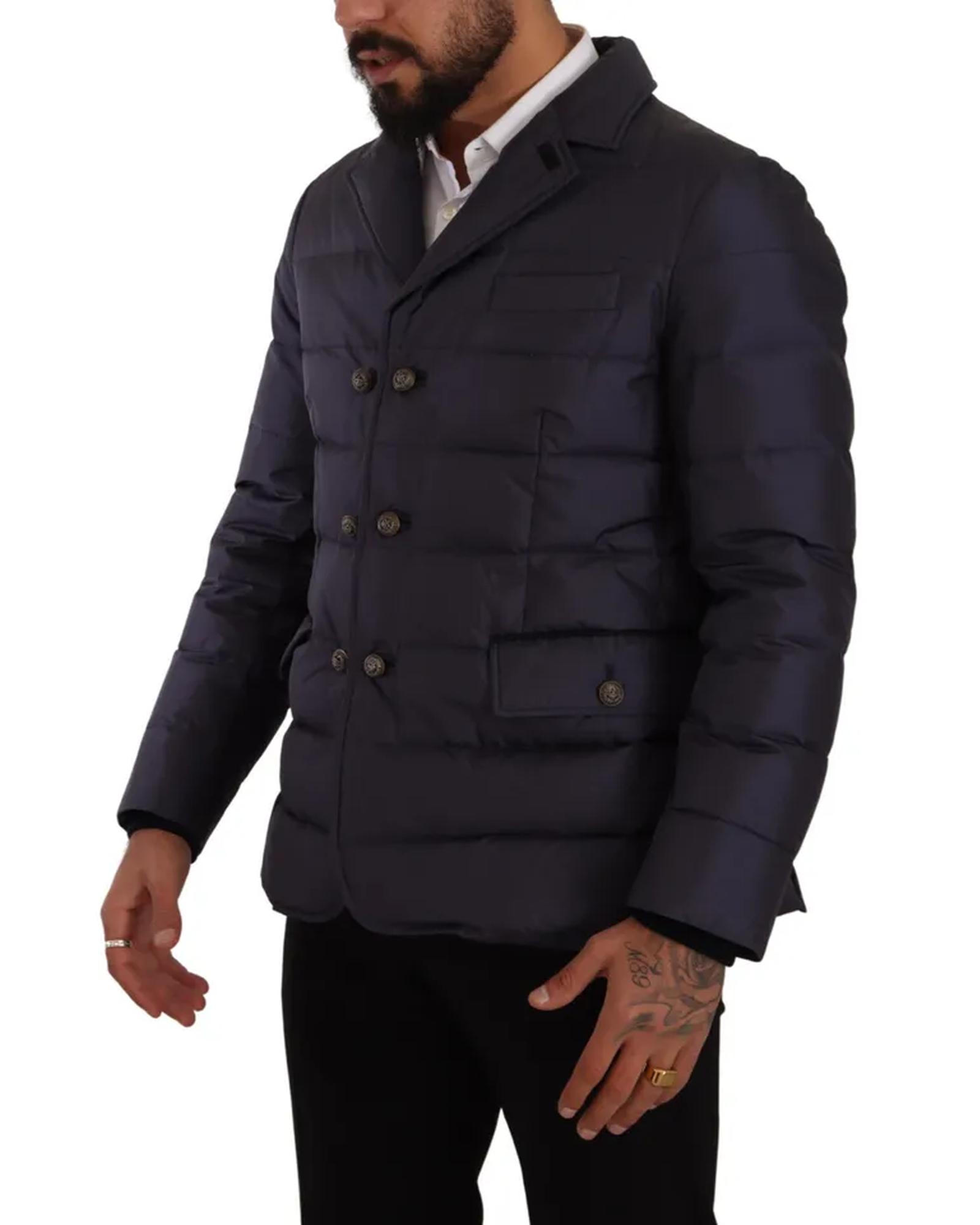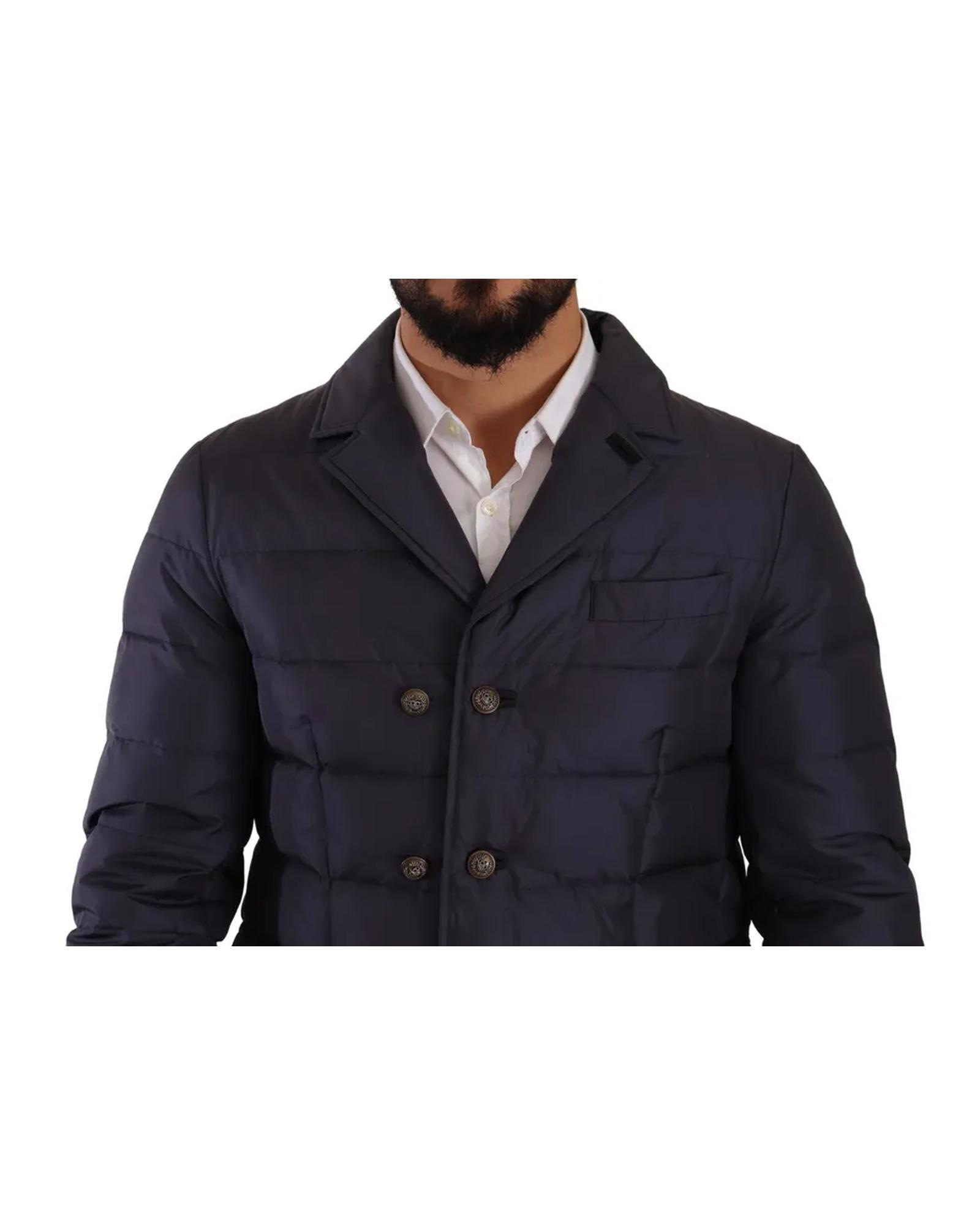 Dolce & Gabbana Men’s Blue Silk Goat Coat Blouson Winter Jacket – 52 IT