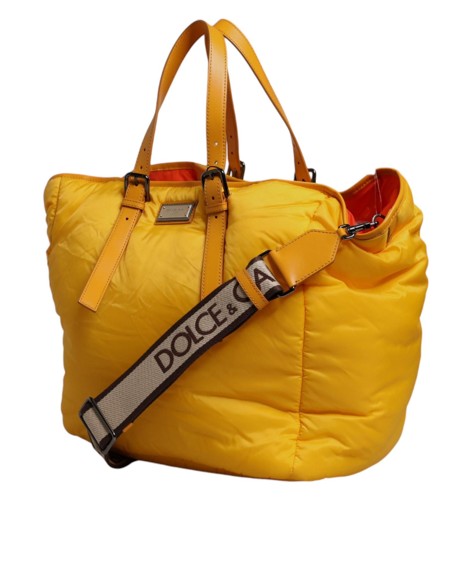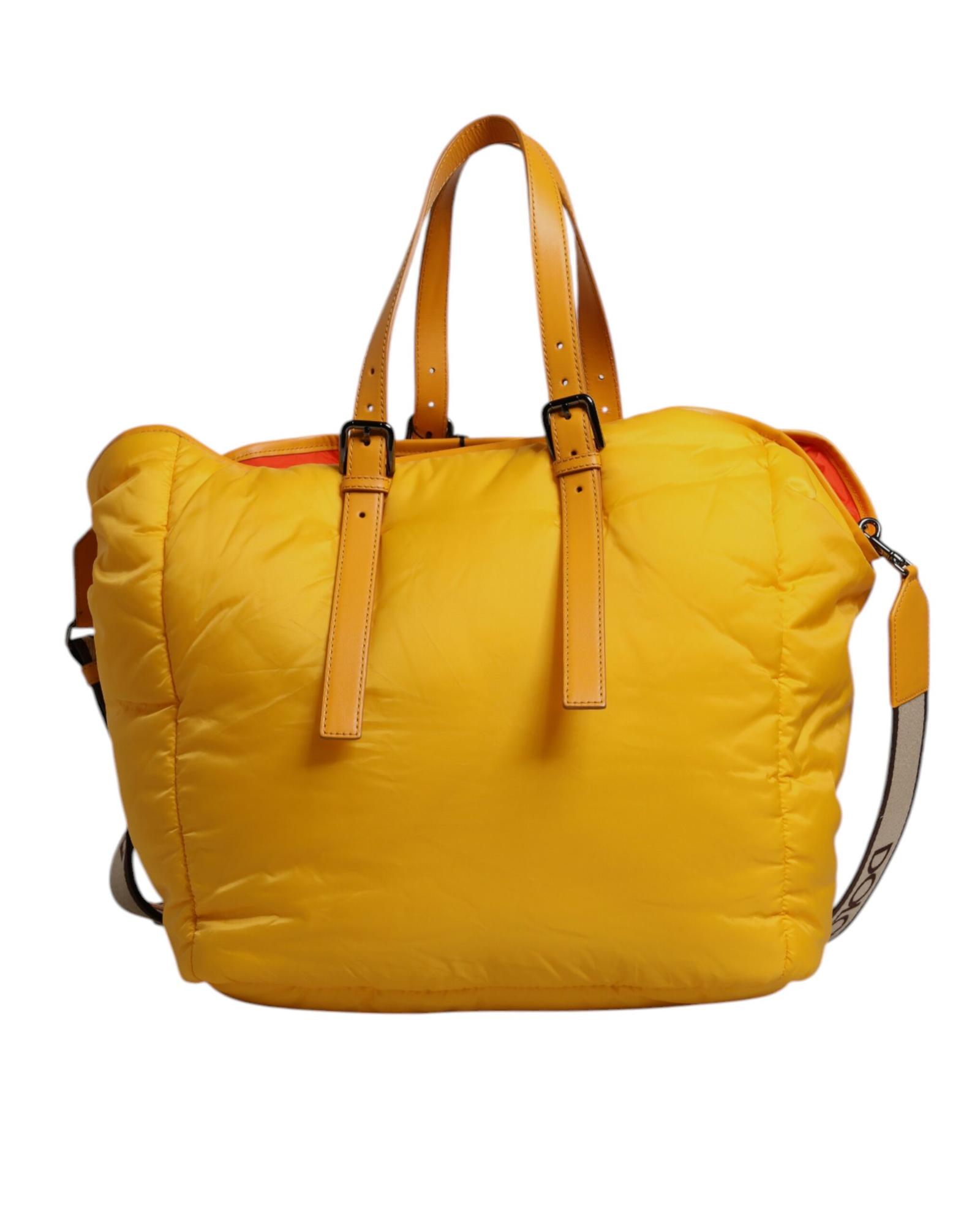 Dolce & Gabbana Men’s Yellow Orange Nylon Logo Plaque Hand Shoulder Duffle Bag – One Size
