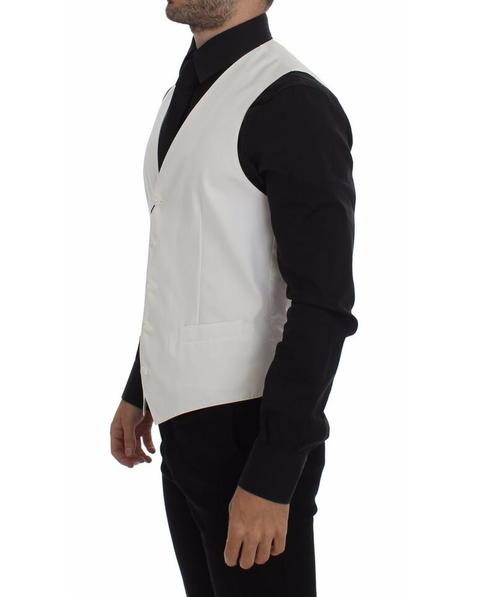 Dolce & Gabbana White Cotton Silk Blend Dress Vest 44 IT Men