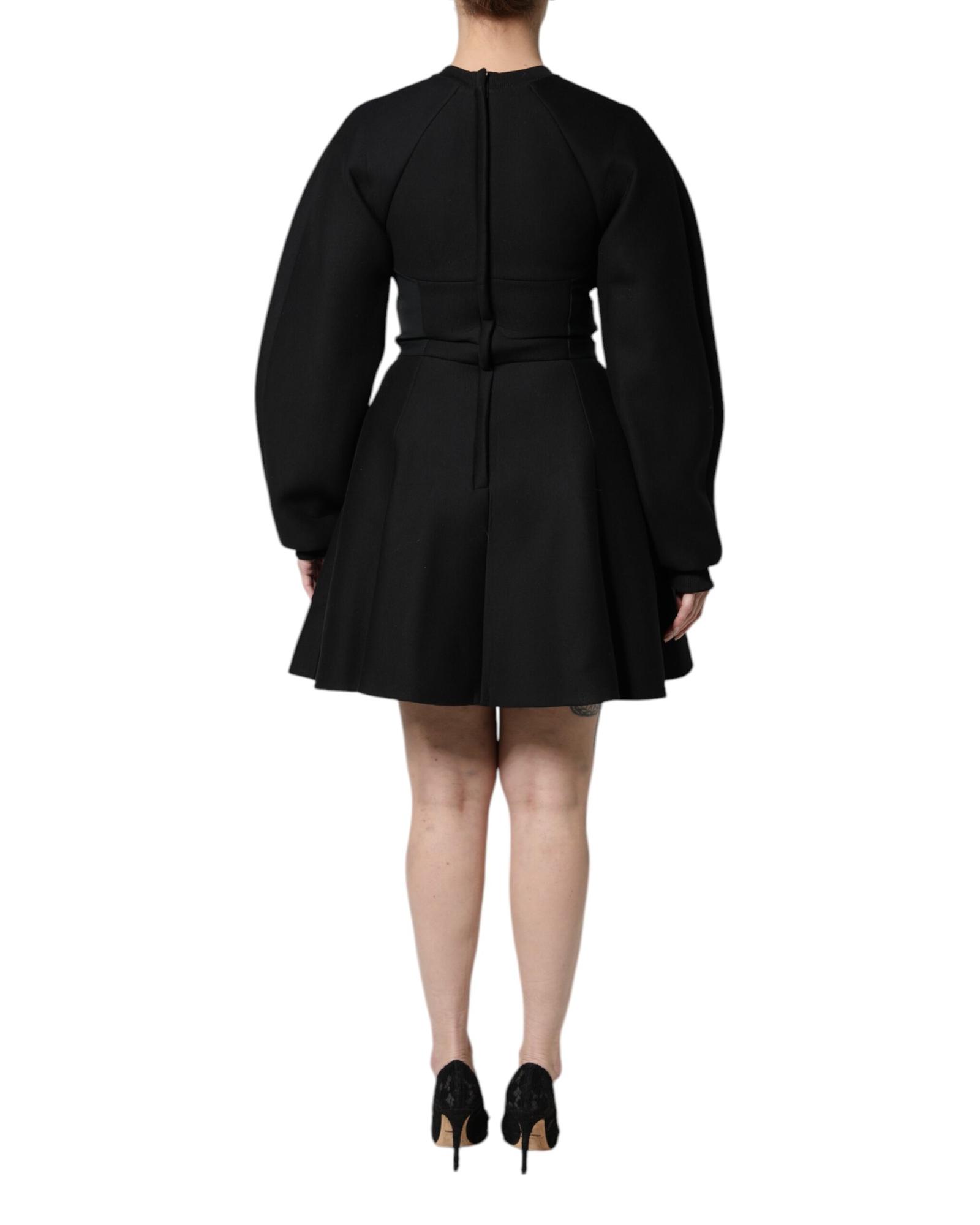 Dolce & Gabbana Women’s Black Cotton Long Sleeves A-line Mini Dress – 42 IT