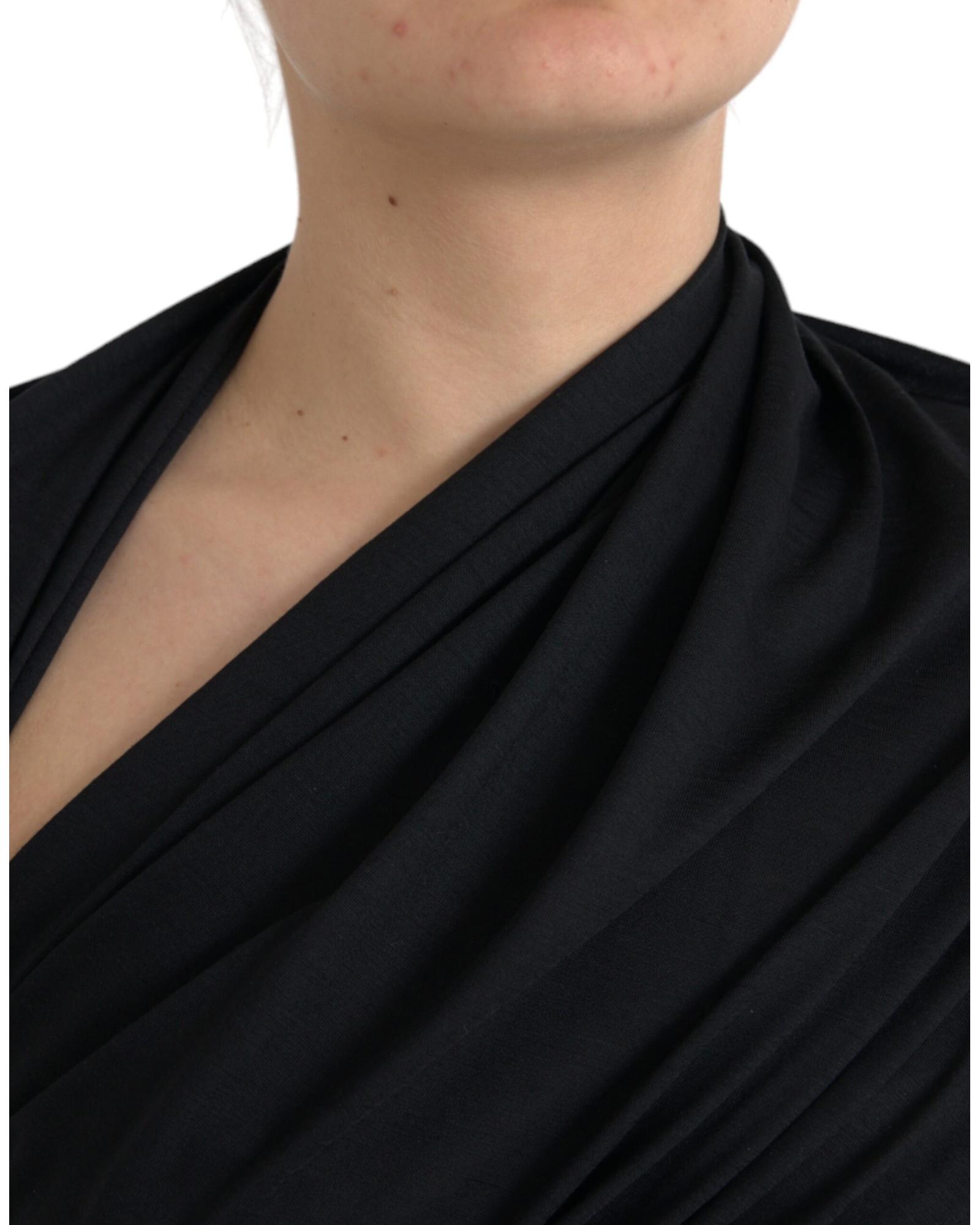Dolce & Gabbana Women’s Black Wool Cutout Asymmetric Long Sleeve Top – 36 IT